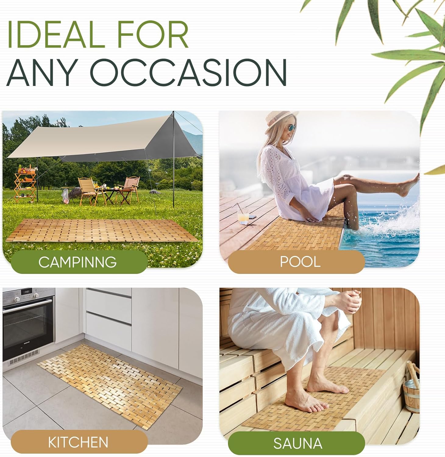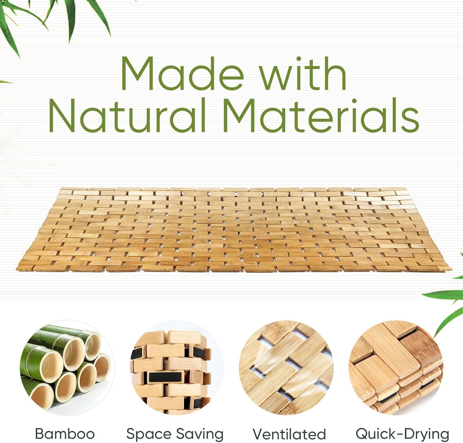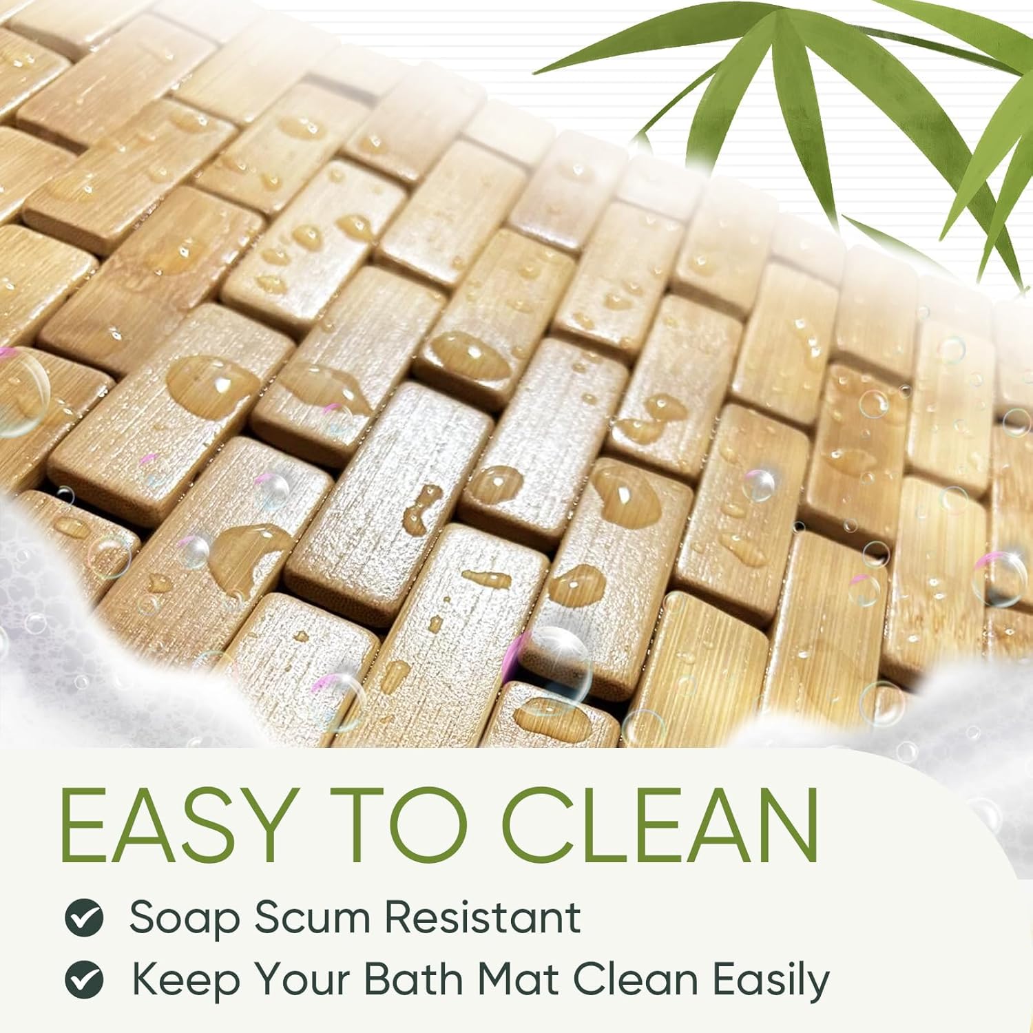 🎋【Sturdy Material】This bamboo bath mat is made of 100% natural bamboo, which is strong and durable. Bamboo is lighter and stronger than plastic or rubber bath mats.