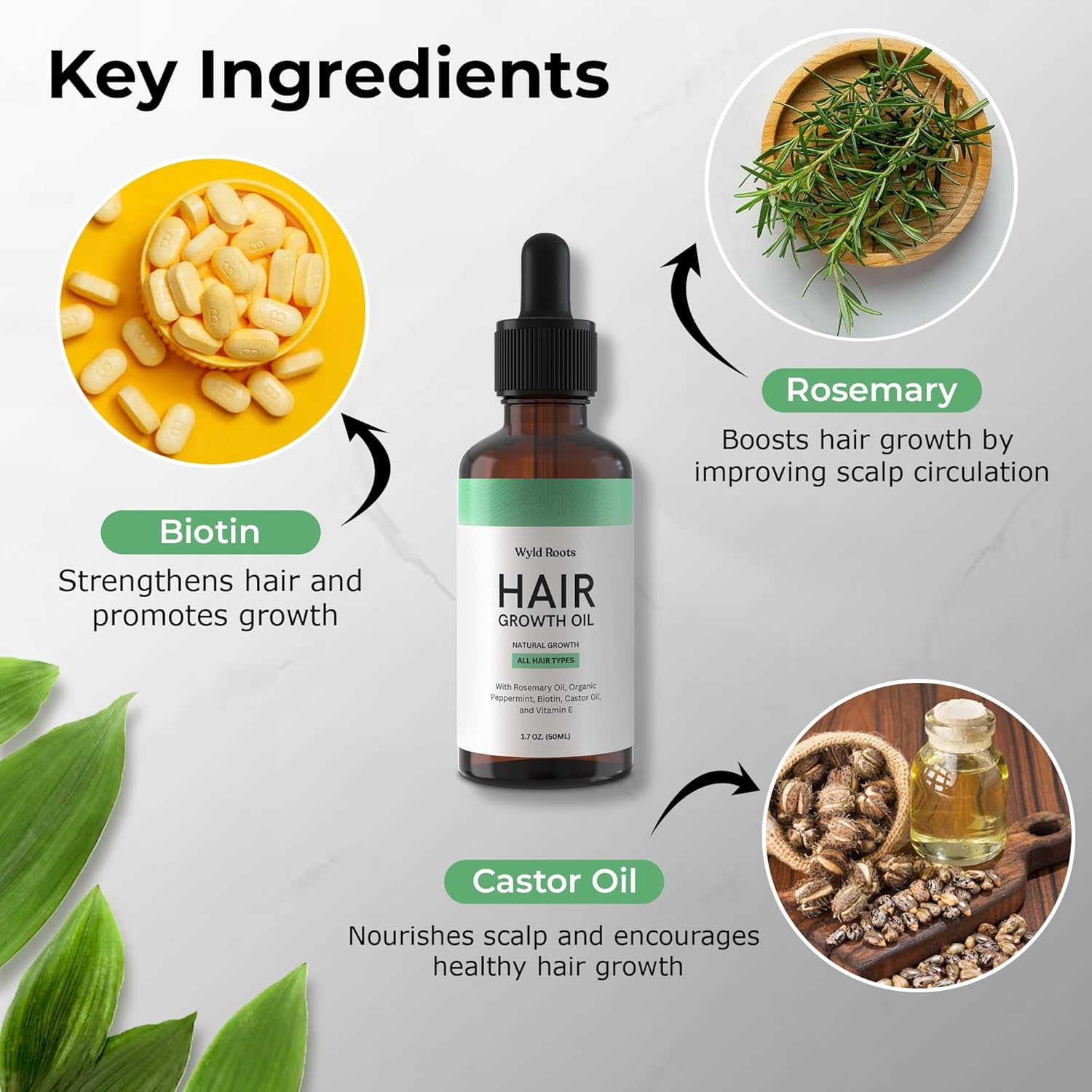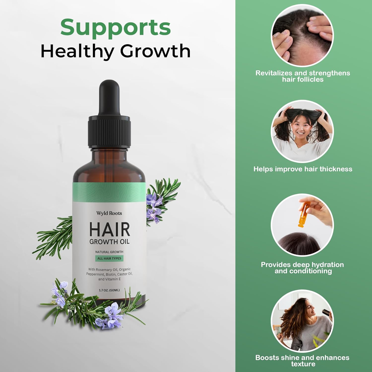 Fed up with lackluster locks and damaged hair? Meet your new best friend: Wyld Roots Natural Hair Growth Oil. This unique blend of rosemary oil, biotin, and castor oil is like a spa day for your scalp. It wakes up your hair follicles and helps supercharge growth.