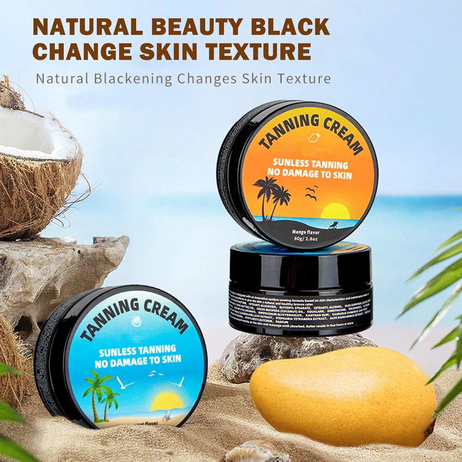 Natural Tanning Cream for Dark Golden Tan, Fast Acting Shine Brown Tanning Gel, Moisturizing & Nourishing Tanning Lotion, Gel Bronceador Marrón Brillo 2.8oz (3, Mango)