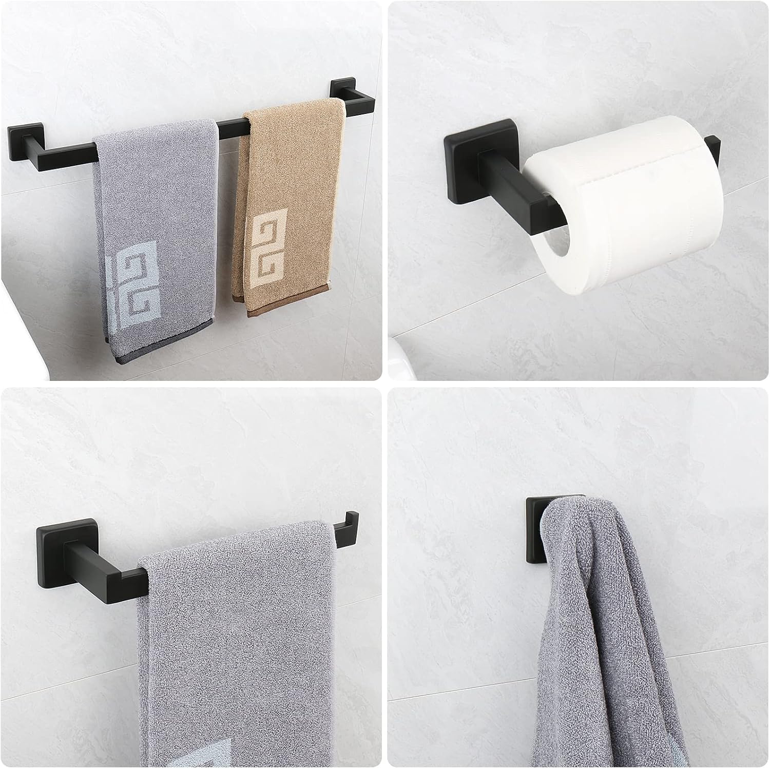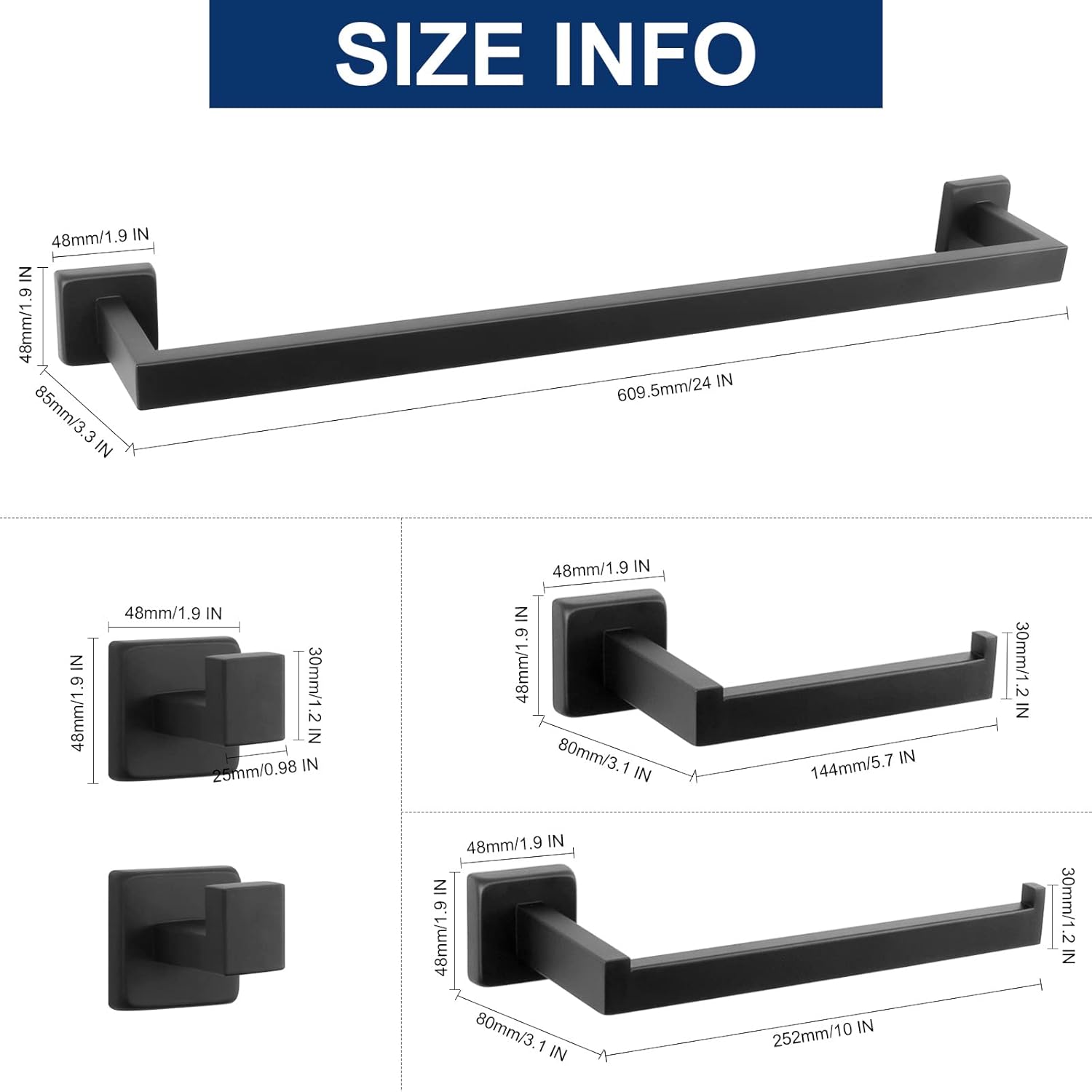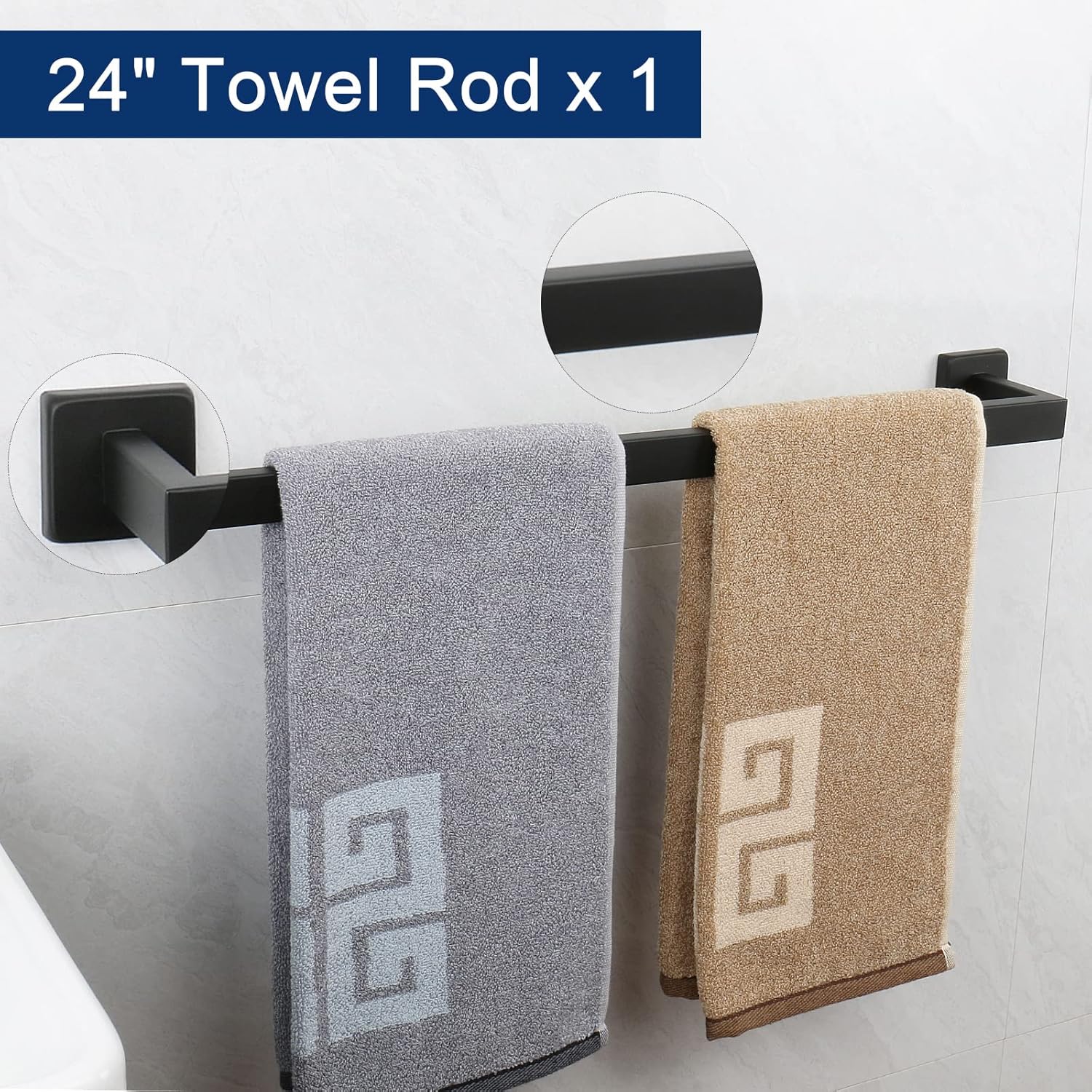 WIDELY APPLICATION: The 24-inch towel rod can hang large towels and bath towels, and the hand towel holder fits small towels. Raised tail of paper towel holder can easy to hold the roll paper prevents it from falling off. Robe towel hook can perfect for bathroom hanging bathrobes, bath balls and kitchen or in anywhere.