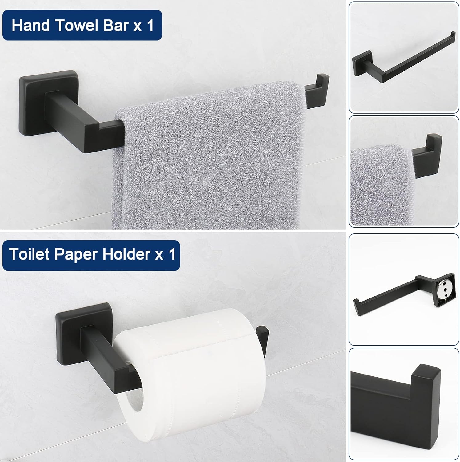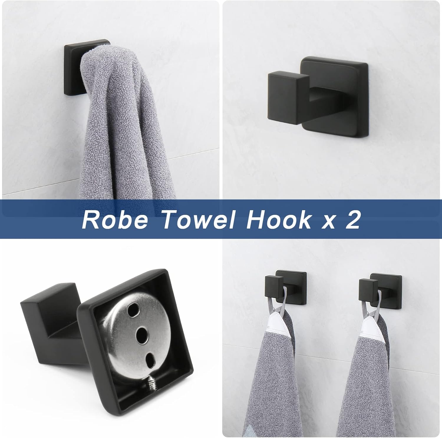 NearMoon 5 Pieces Bathroom Hardware Set 304 Stainless Steel, Square Towel Rack Set- 24″ Towel Rod+ Hand Towel Bar+ Toilet Paper Holder+ 2 Robe Hooks, Wall Mounted Bath Accessories (Matte Black)