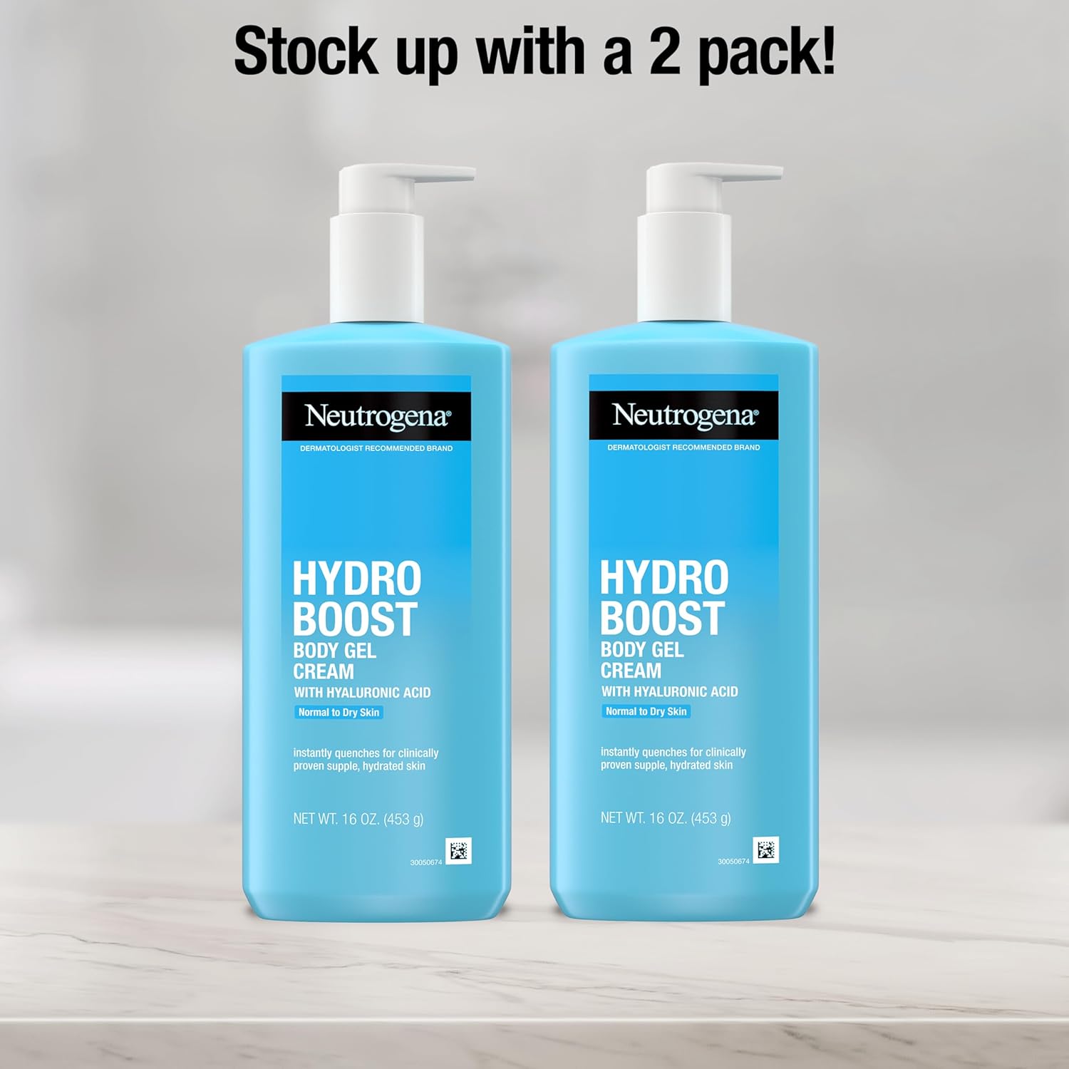 Twin pack of two, 16-ounce bottles of Neutrogena Hydro Boost Hydrating Body Gel Cream with Hyaluronic Acid to instantly quenche thirsty skin