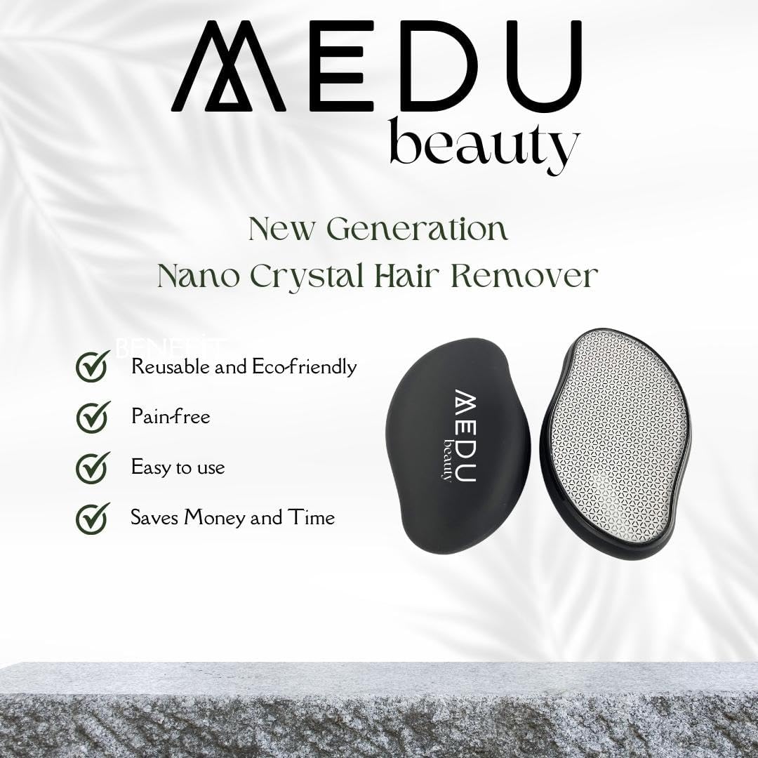 The MEDU beauty New Generation Nano Glass Crystal Hair Remover is the newest revolution in hair removal technology. Painless, fast and reusable, it’s suitable for all skin types, even the most sensitive ones. The nano glass crystal technology quickly and effectively removes unwanted body hair while exfoliating dead skin, leaving you with soft, smooth skin every time. Enjoy silky smooth skin without worrying about cuts, nicks or razor burn. Plus, you won’t have to waste money on refills! Save time and money while keeping your skin looking beautiful. Our eco-friendly device is not only good for the environment but also for your wallet as it is a reusable option. Experience ultimate comfort and convenience with The MEDU beauty New Generation Nano Glass Crystal Hair Remover today! MEDU beauty New Generation Nano Glass Crystal Hair Remover – Upgraded, Painless, Fast, Reusable, Eco-Friendly, Suitable for Sensitive Skin, Crystal Hair Eraser for Women and Men To use it correctly, apply light pressure while making circular movements. Individuals with skin sensitivity should consider using the product on their arms and legs before using it in more delicate areas such as the face, armpits, and bikini area.