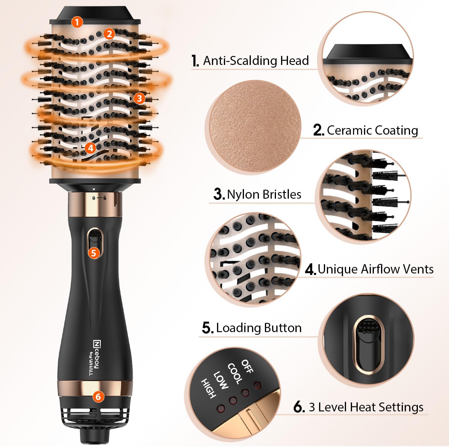 Nicebay® Hair Dryer Brush Blow Dryer Brush in One, Hot Air Brush Set for Straightening/Drying/Curling, Oval Brush, Multi-Temperature Settings, Detachable Design for Women