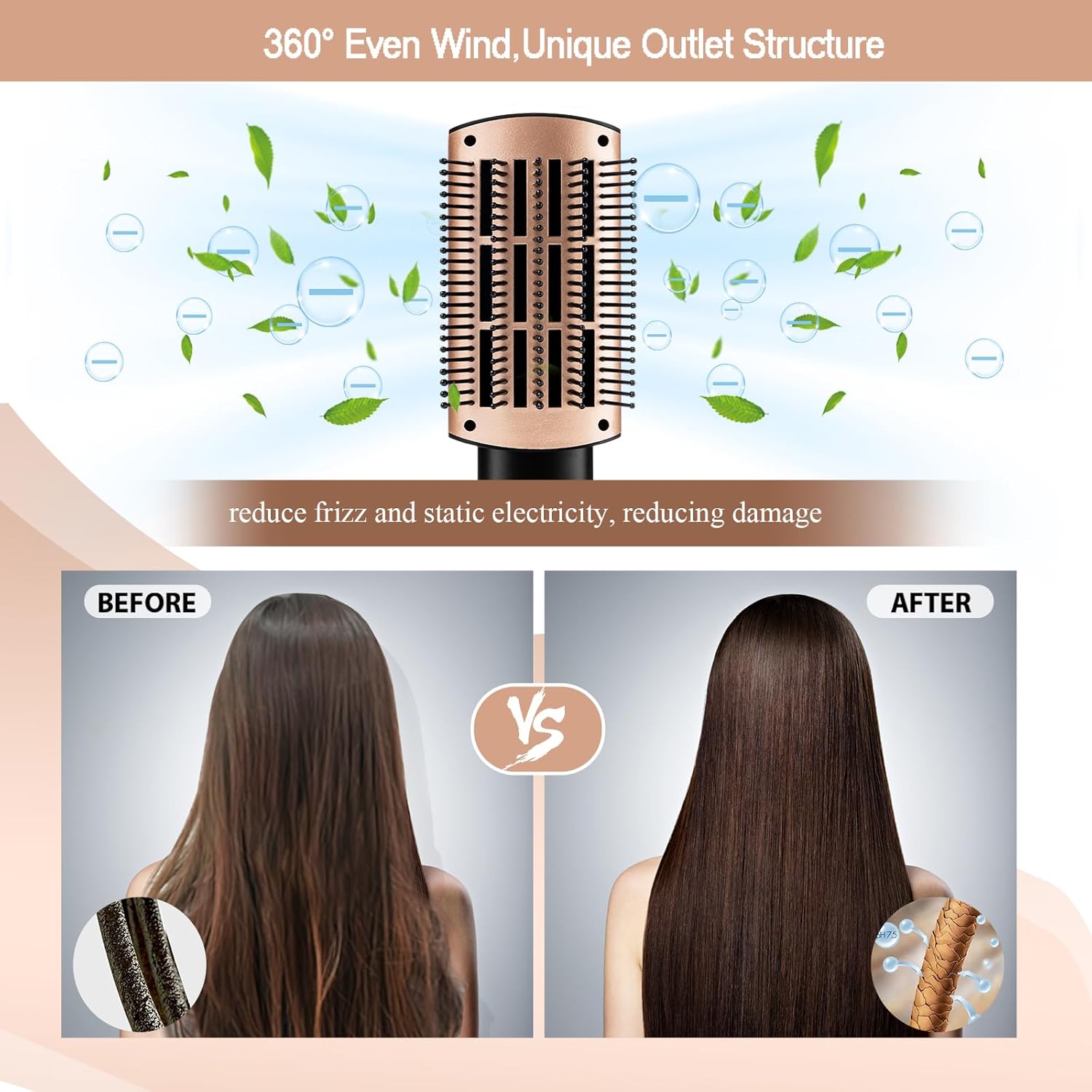🍰【SAFE & FLEXIBLE】The hot air brush meets the US safety requirements, has passed the ETL certification;equipped with ALCI anti-leakage plug (meets required for hair dryers in the US. Look for the “test” button on the plug that is required for all hair dryers in the US), when electricity leaks automatically disconnect for your safety. The 360° rotating cord design allows for free movement without tangling or damage, while the hanging hook makes storage convenient and user-friendly.