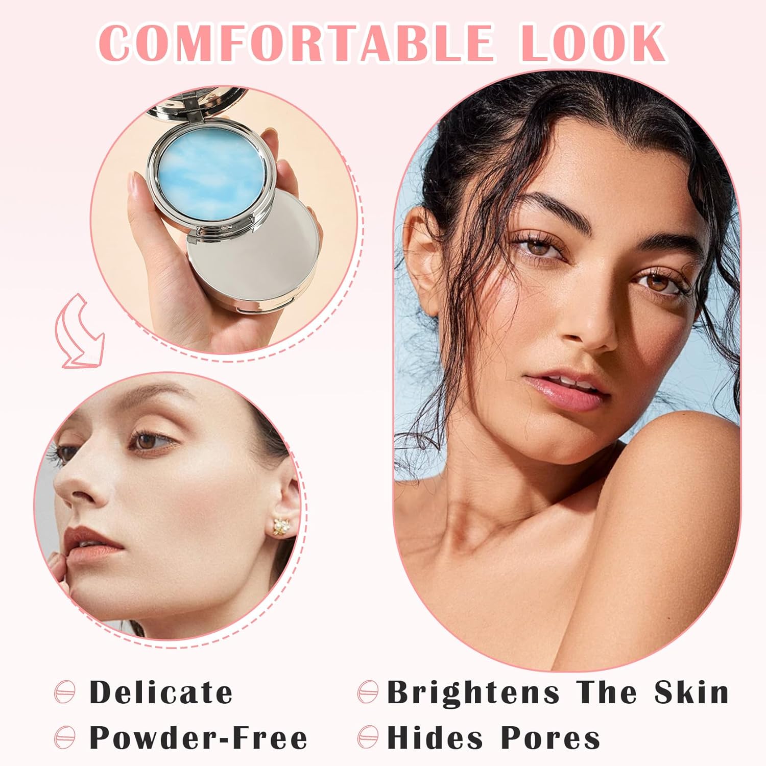 【Setting Powder】Pressed powder can effectively reduce skin dullness, modify skin color, cover blemishes, shrink pores and fine lines, make skin look brighter, and reveal a healthy, radiant makeup look.