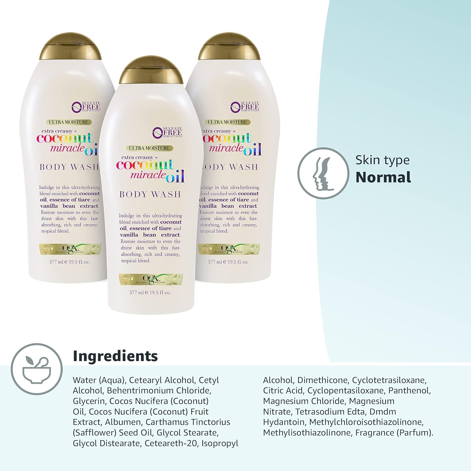 Be the first to review “OGX Extra Creamy + Coconut Miracle Oil Ultra Moisture Body Wash, 58.5 Fl Oz, Pack of 3”