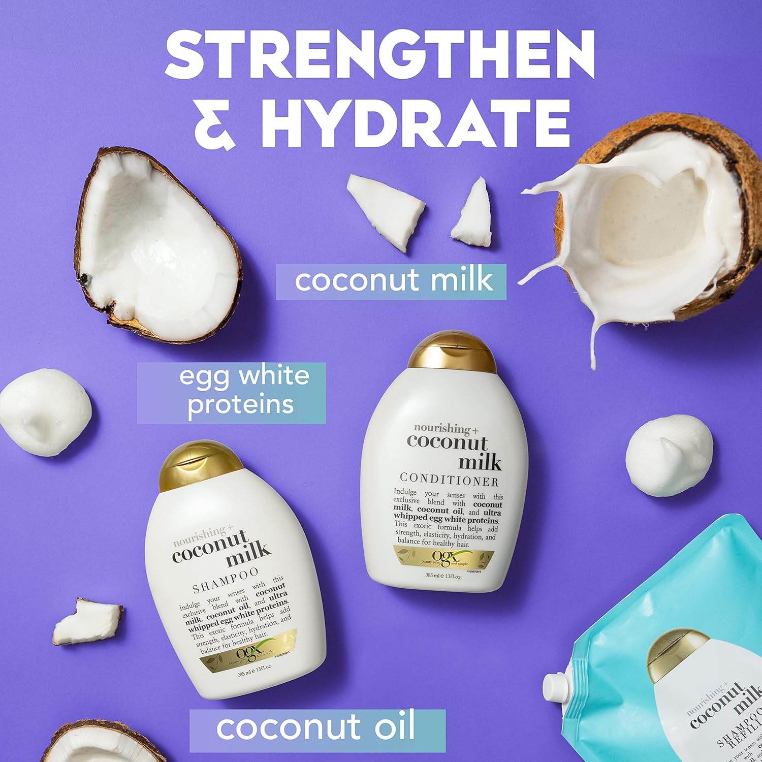Discover your silkiest hair ever with OGX Nourishing + Coconut Milk Shampoo Refill Pouch