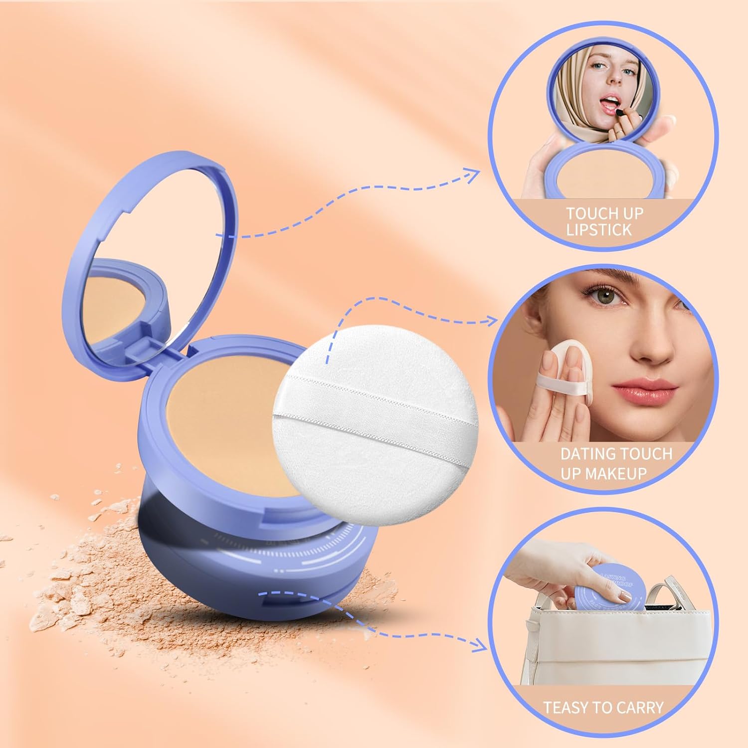 ✨【Easy to Use】The refined pressed powder is compact and comes with a sponge puff, making it perfect for keeping in your makeup bag and school bag. Simply swipe a few times for full coverage, then pop it in your makeup bag for a quick touch-up on the go.
