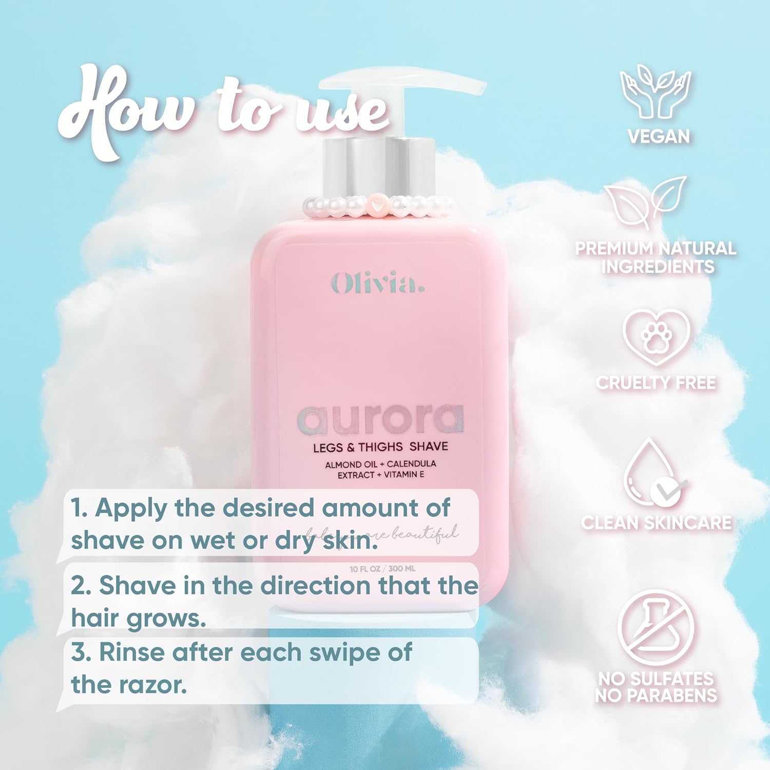 Olivia Aurora, women shaving cream for legs and thigh, shaving butter women sensitive skin, travel shave cream women practical and easy to carry 10 Fl Oz cream after shave women