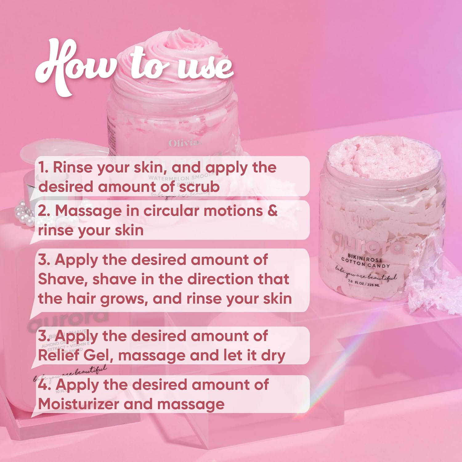 Olivia Bikini Area Pre Shave Scrub, Shaving Cream , After Shaving Relief Gel & Bikini Area Cream