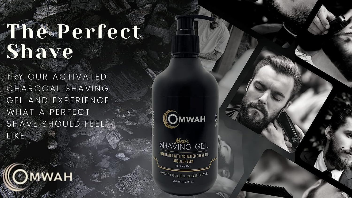 OMWAH Activated Charcoal Barber Shaving Gel Straight Razor Shave Gel (16.9 oz.)
