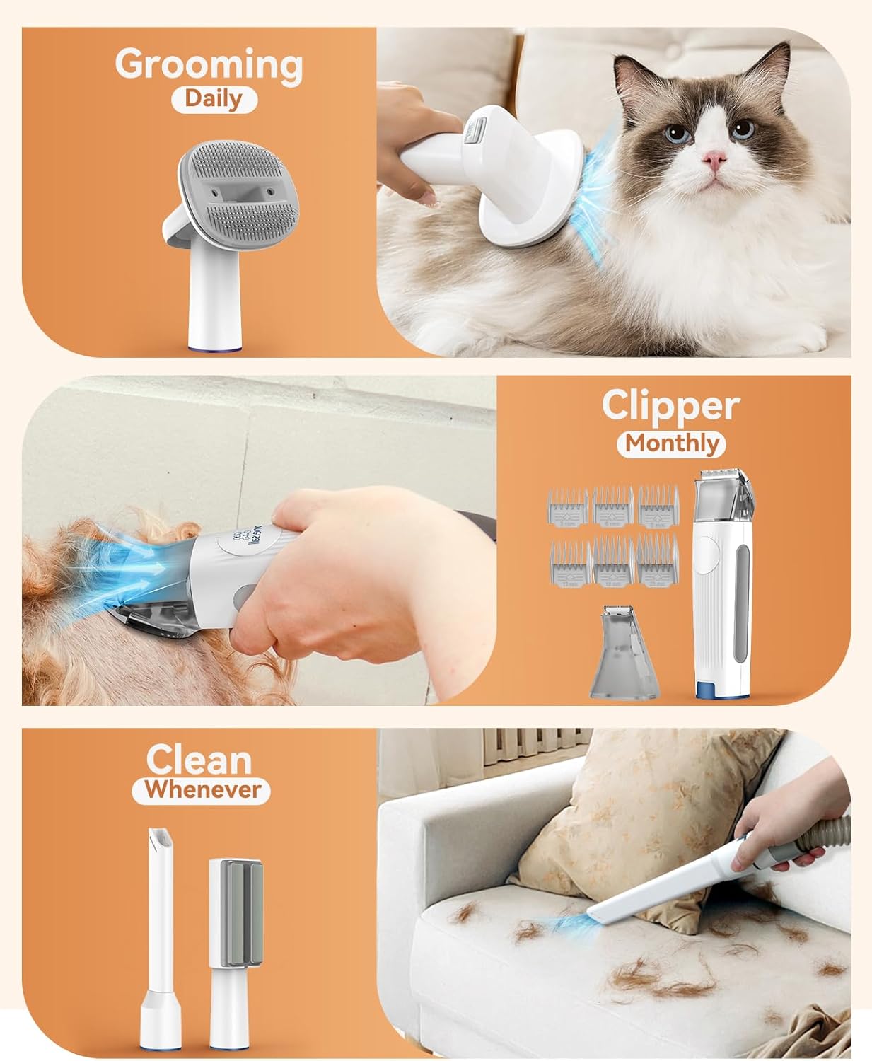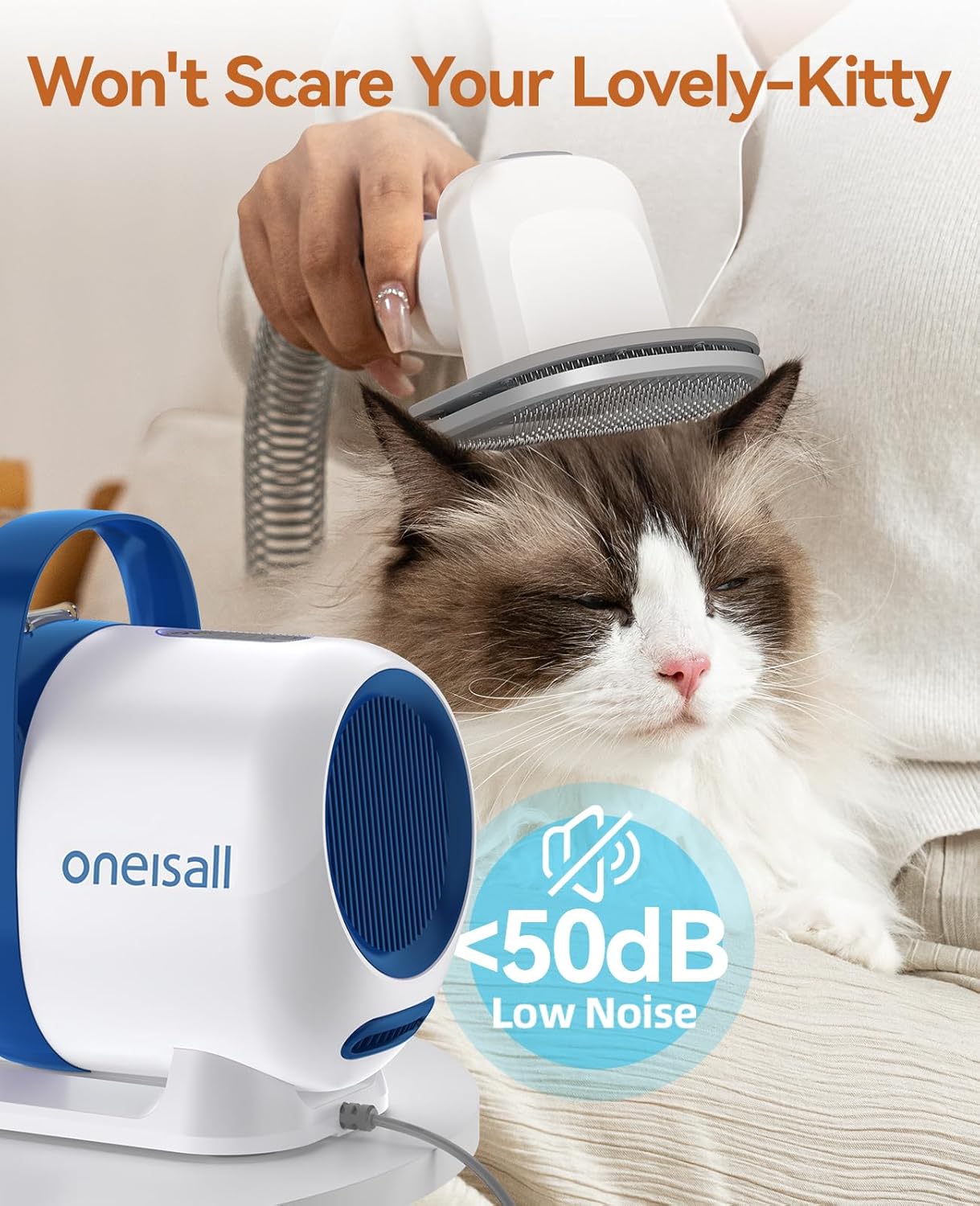 oneisall Cat Grooming Vacuum, Quiet Pet Vacuum Grooming Kit with Brush & Clippers for Hair Shedding Trimming, 6 in 1 Cat Vacuum Groomer for Pet Hair Grooming