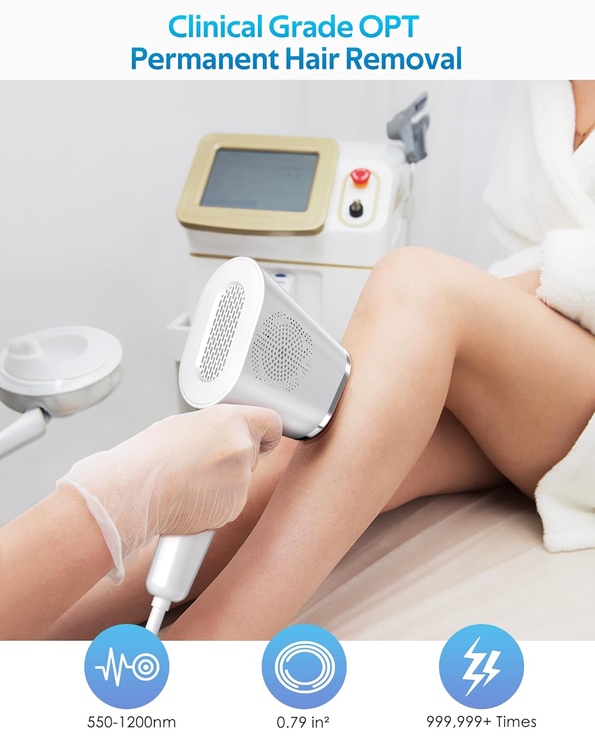 🌟【Revolutionary OPT】Embrace the latest at home laser hair removal device with OPT (Optimum Pulse Technology), say goodbye to outdated IPL! Precise control of the 550-1200nm light wavelength spectrum greatly improves the accuracy and efficiency of hair removal. TMOMT painless hair removal device has stable light wave energy, which can ensure excellent safety and effect.