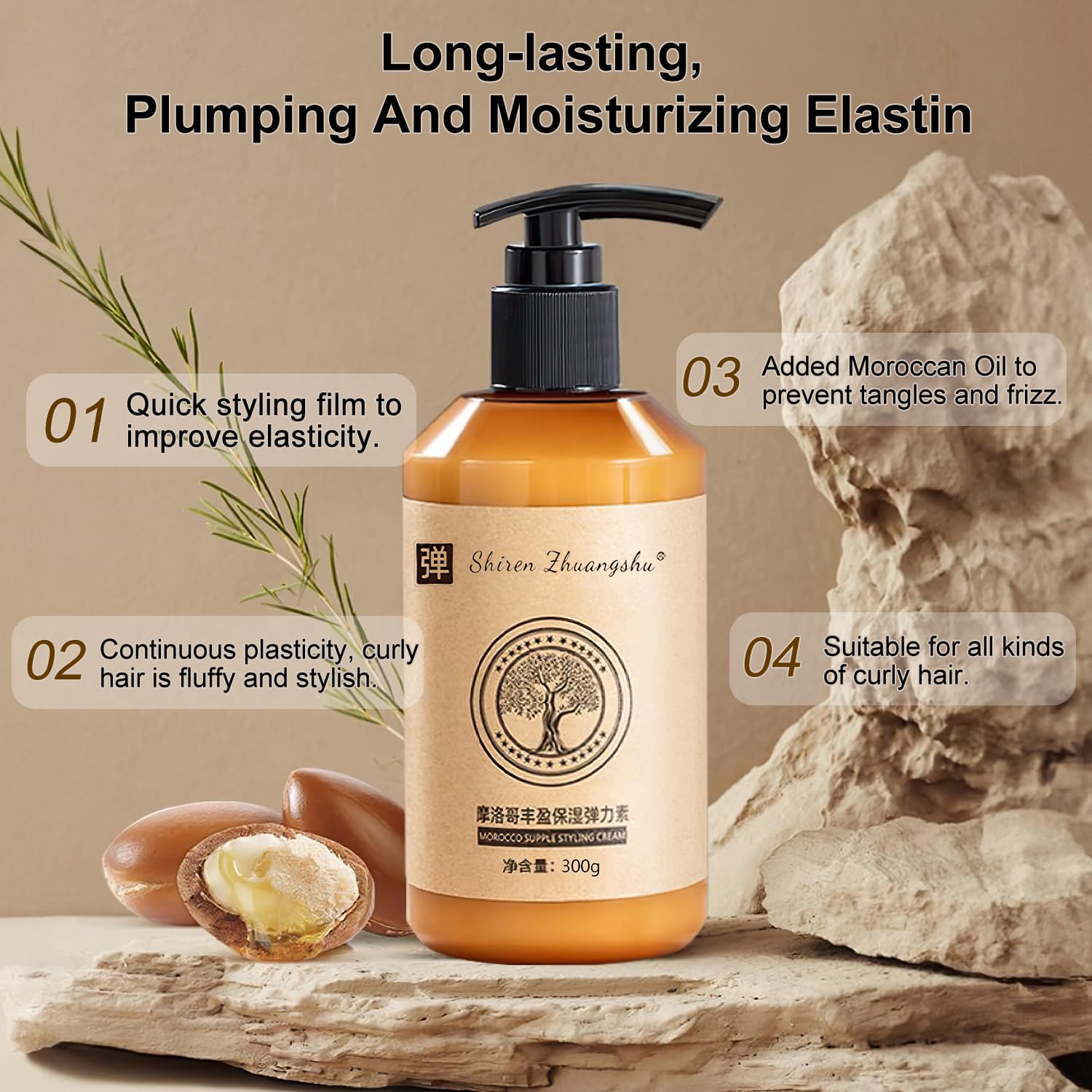 [Original and Genuine] Long-lasting Styling Moroccan Volume Moisturizing Elasticity, 300g Morocco Moisture Styling Elastin Conditioner for Curly Hair, Moroccan Curl Defining Cream