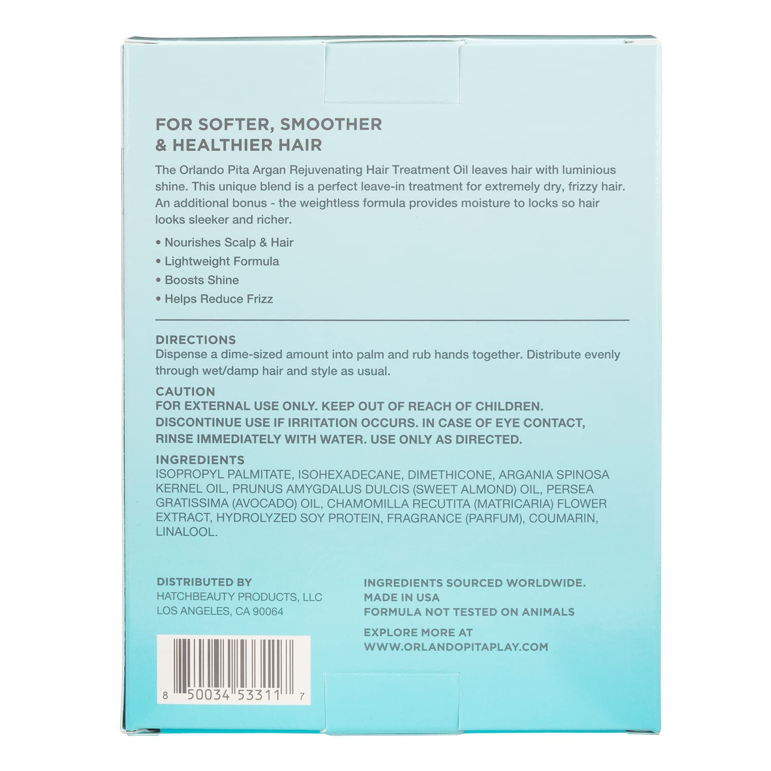 INNOVATIVE TECHNOLOGY: The Orlando Pita Argan Rejuvenating Hair Treatment Oil is the perfect leave-in treatment for extremely dry, frizzy hair. An additional bonus – the weightless formula provides moisture to locks so hair looks sleeker and richer. This salon-quality serum is formulated with nourishing Moroccan Argan Oil and Soy Protein to deliver moisture, help enhance shine and improve manageability for softer, smoother and healthier looking hair. Developed for all hair types and safe for col
