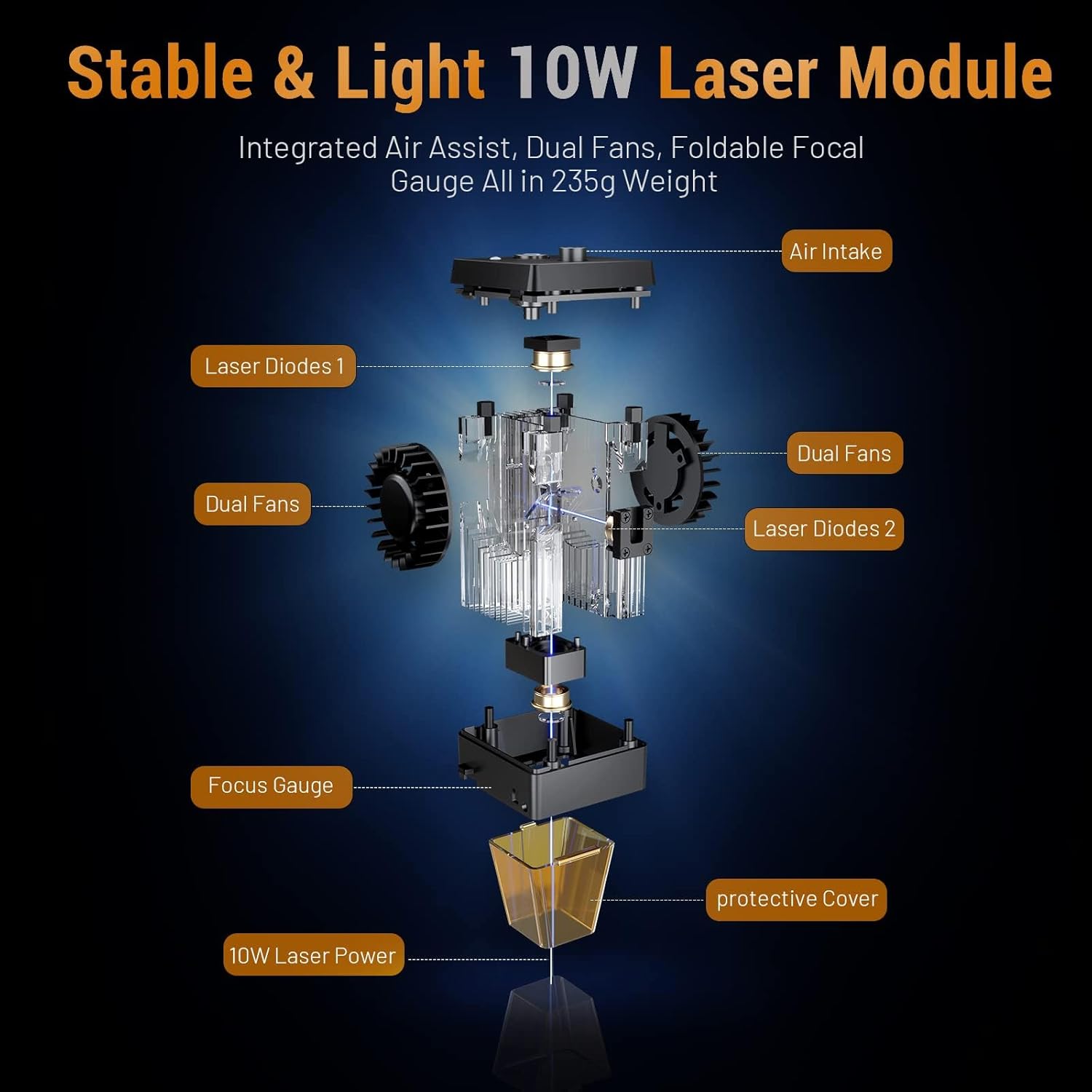 Easy Installation Laser Cutter – The assembly can generally be completed in about 10-15 minutes. Industrial grade full metal structure design makes ORTUR Laser Master 2 Pro S2 LU2-10A laser engraver more reliable and improves engraving accuracy. The entire engraving machine adopts a modular design, which is convenient for users to assemble, repair, and replace and update machine parts.