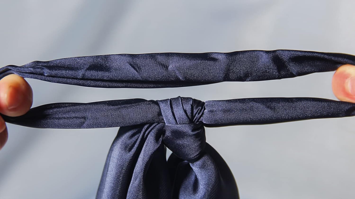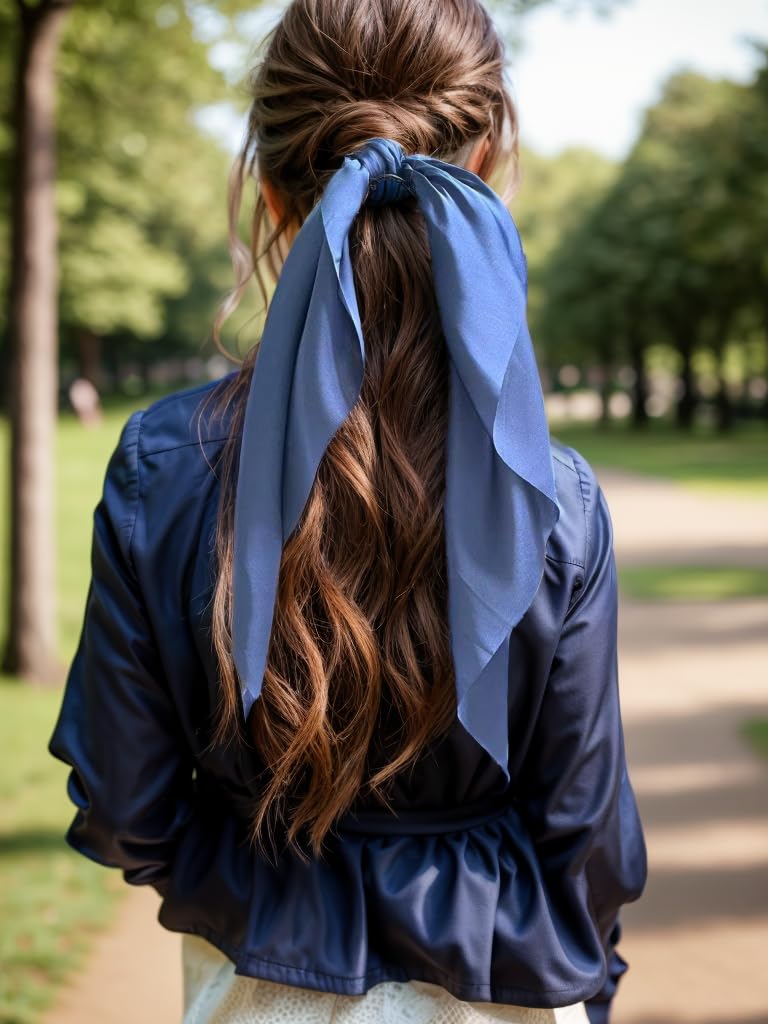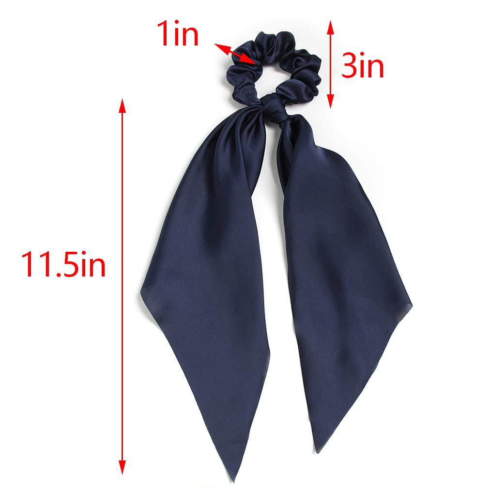 Pack of 2 Knotted Bow Hair Scrunchies Elastic Hair Scarf Black Hair Ties Bands Satin Hair Ribbon Scrunchy Red Ponytail Holder for Women and Girls (Navy blue)