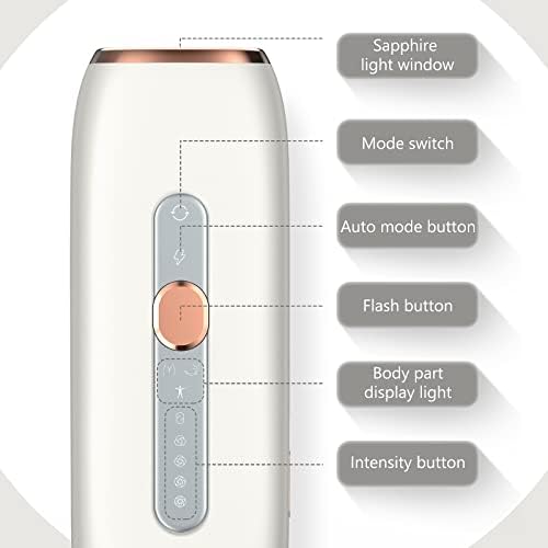 5 Energy Levels&2 Flash Modes:There are 5 adjustable energy levels, and you can adjust it according to different skin sensitivity on different body parts, or skin color; There are 2 flash modes, auto flash and manual flash. By pressing the mode switch, you can choose modes, such as face-beautifying, body-beautifying, and bikini-beautifying; By pressing the auto-mode button, it seldom requires pressing flash button to remove hair all the time