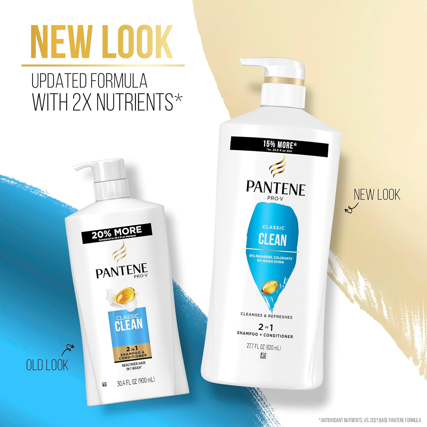 Pantene Classic Clean 2-in-1 Shampoo and Conditioner Set with Hair Treatment, Pro-V Nutrients for Dry, Color-Treated Hair, Long-Lasting Nourishment & Hydration Antioxidant-Rich,27.7 Fl Oz Each, 2 Pack