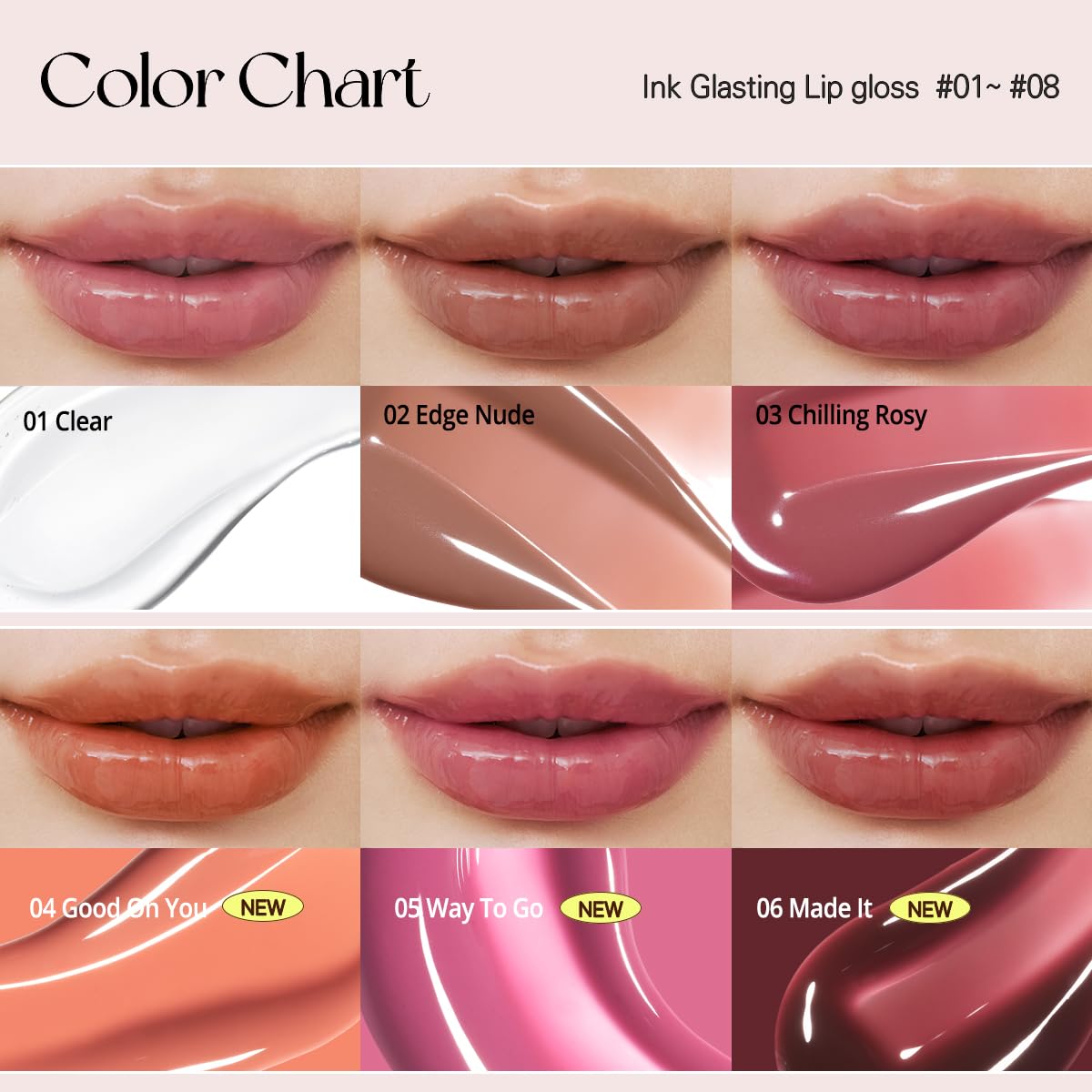[GLAZED SHINE] When a just-right shade meets an ultra-brilliant finish, it’s the best of both worlds. Your lips are guaranteed to look fuller, smoother, and stunningly glass-like all day long. (Glow + Lasting = Glasting)
