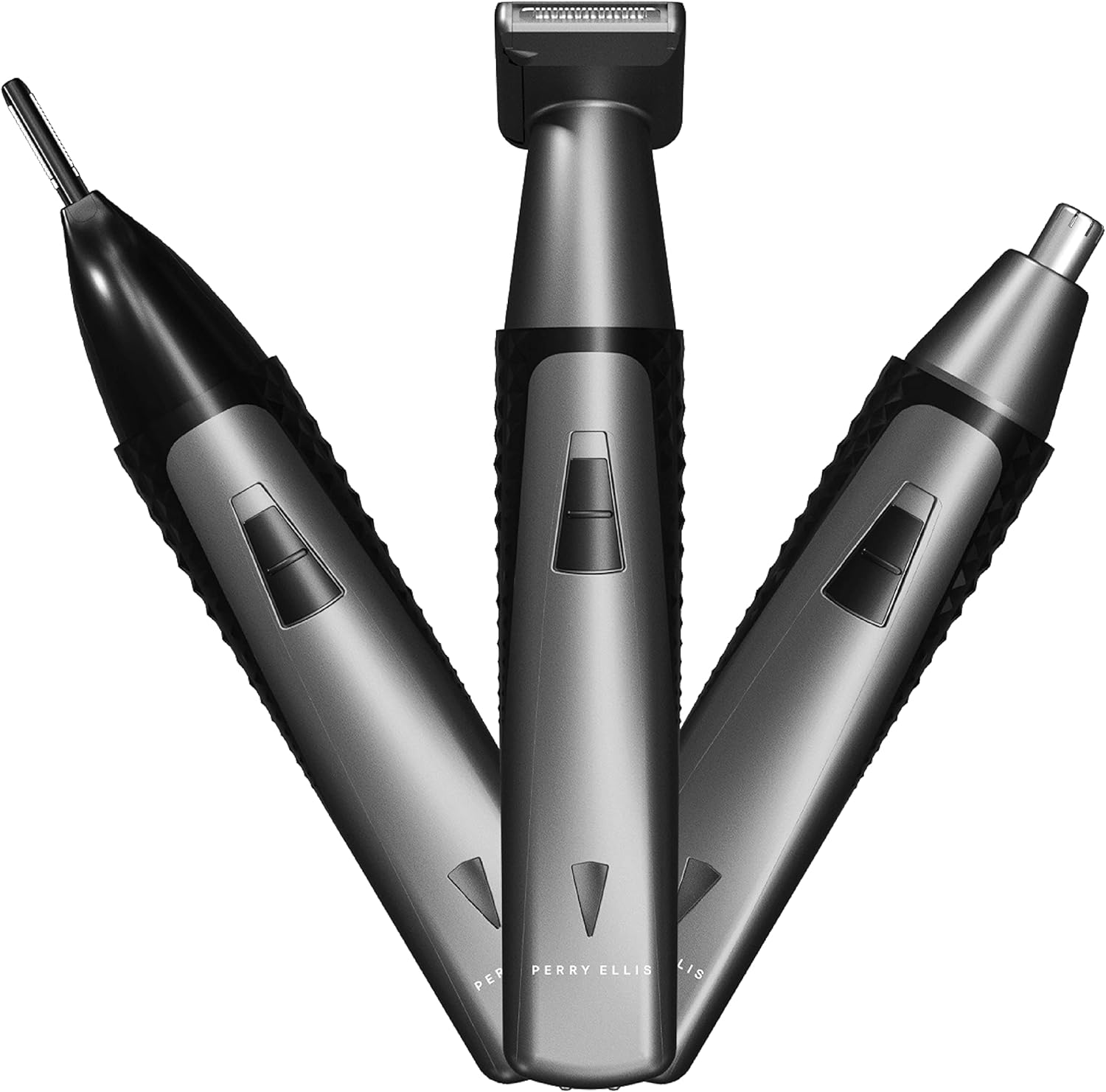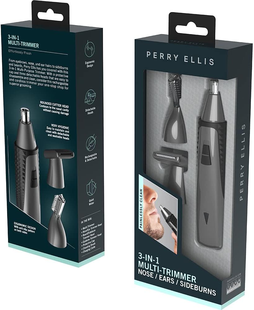 3-in-1 Powered Multi-Trimmer: Perry Ellis’ PM210 tackles the rogue hairs that pop up in unfortunate places, while serving double-duty as a styling detailer for beards and sideburns. Sporting 3 detachable heads for assorted specialty trimming, this portable powerhouse was built for life’s many growth spurts.