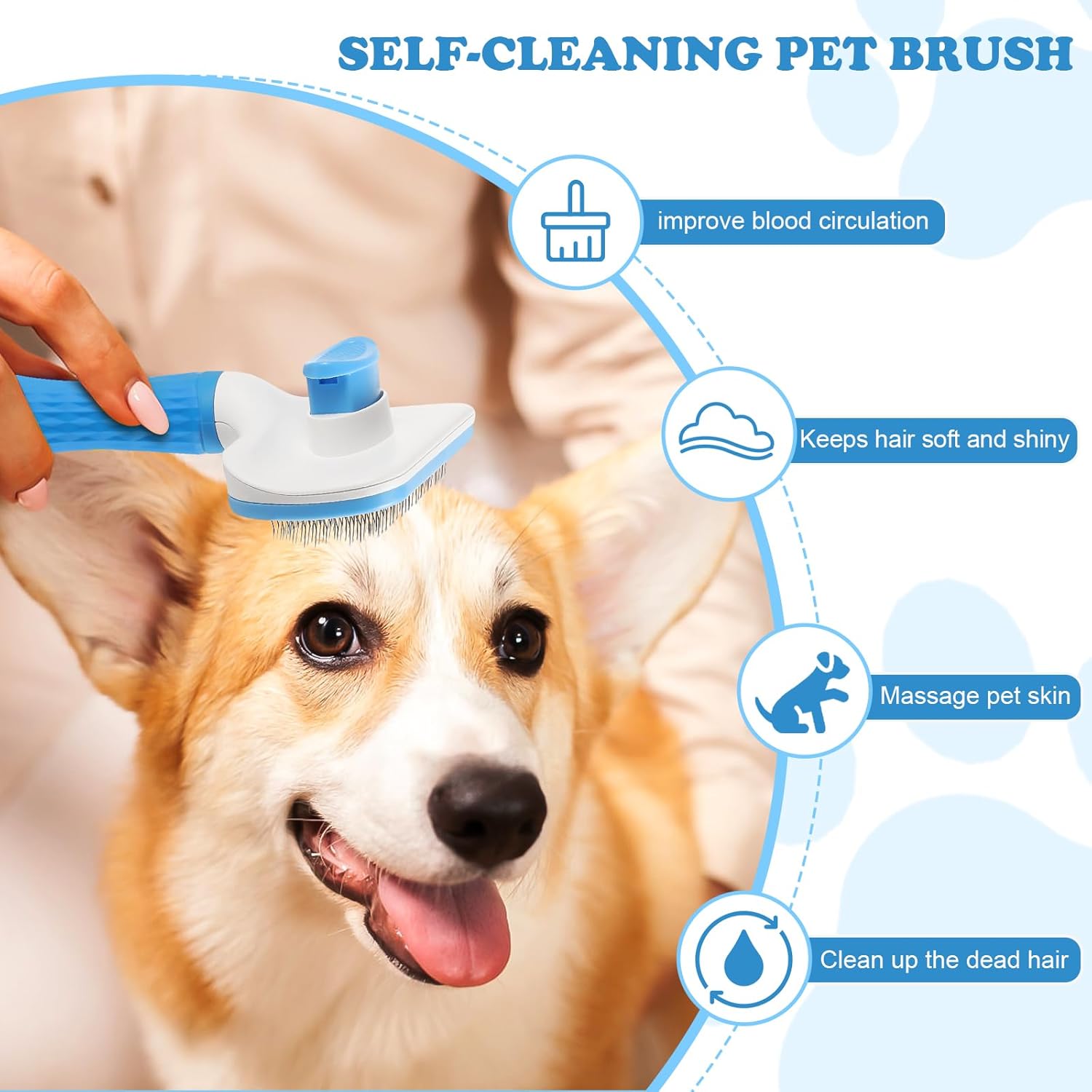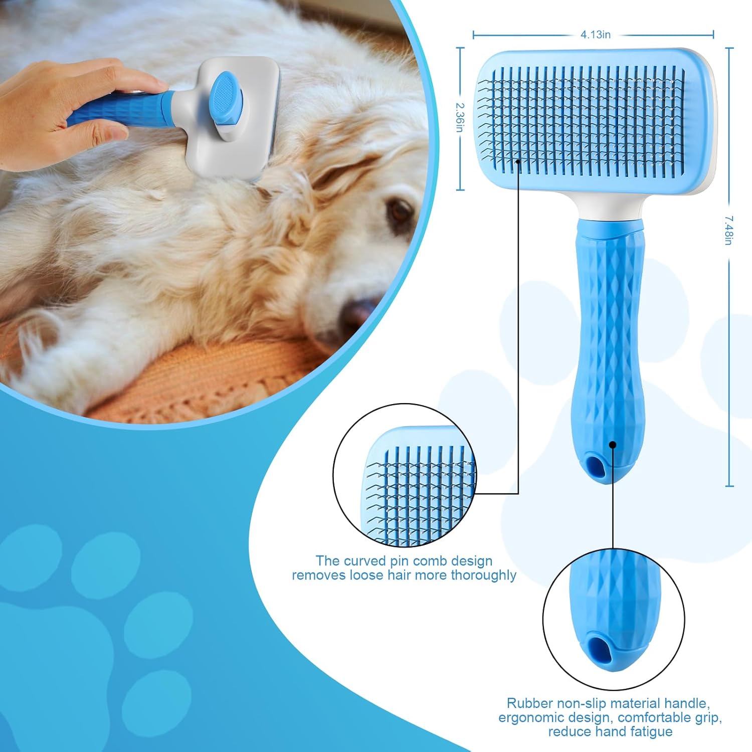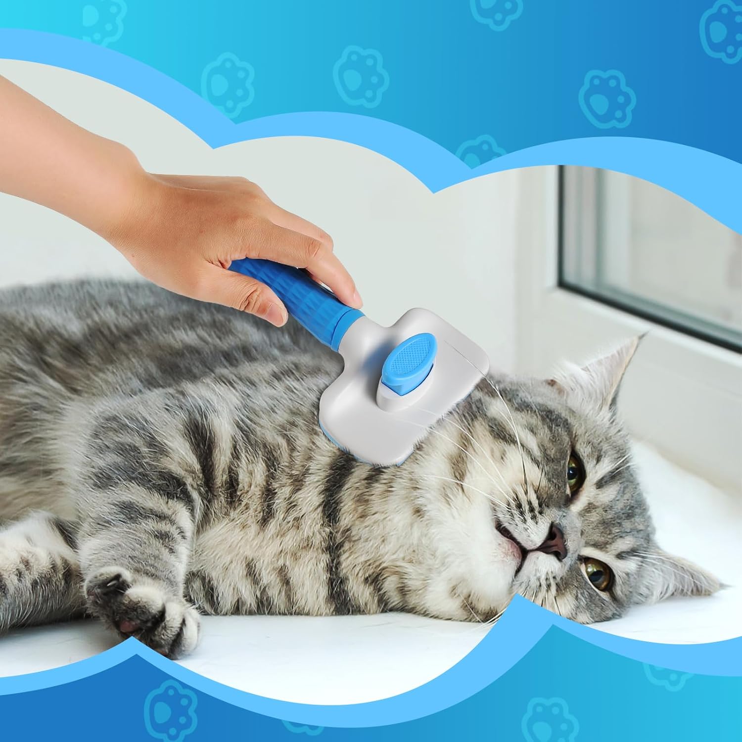 pet brush,cat hair brush,dog brush,Cat & Dog Grooming Tool with Release Button,Remove Loose Hair, Prevent Tangling,cat brushes for indoor cats,Fine Needle(Blue)