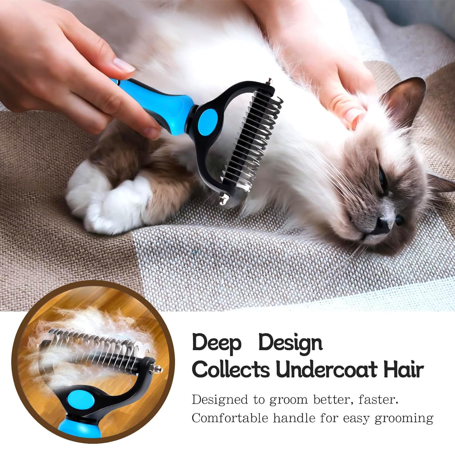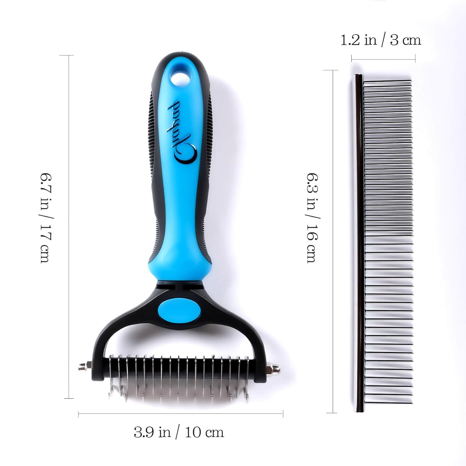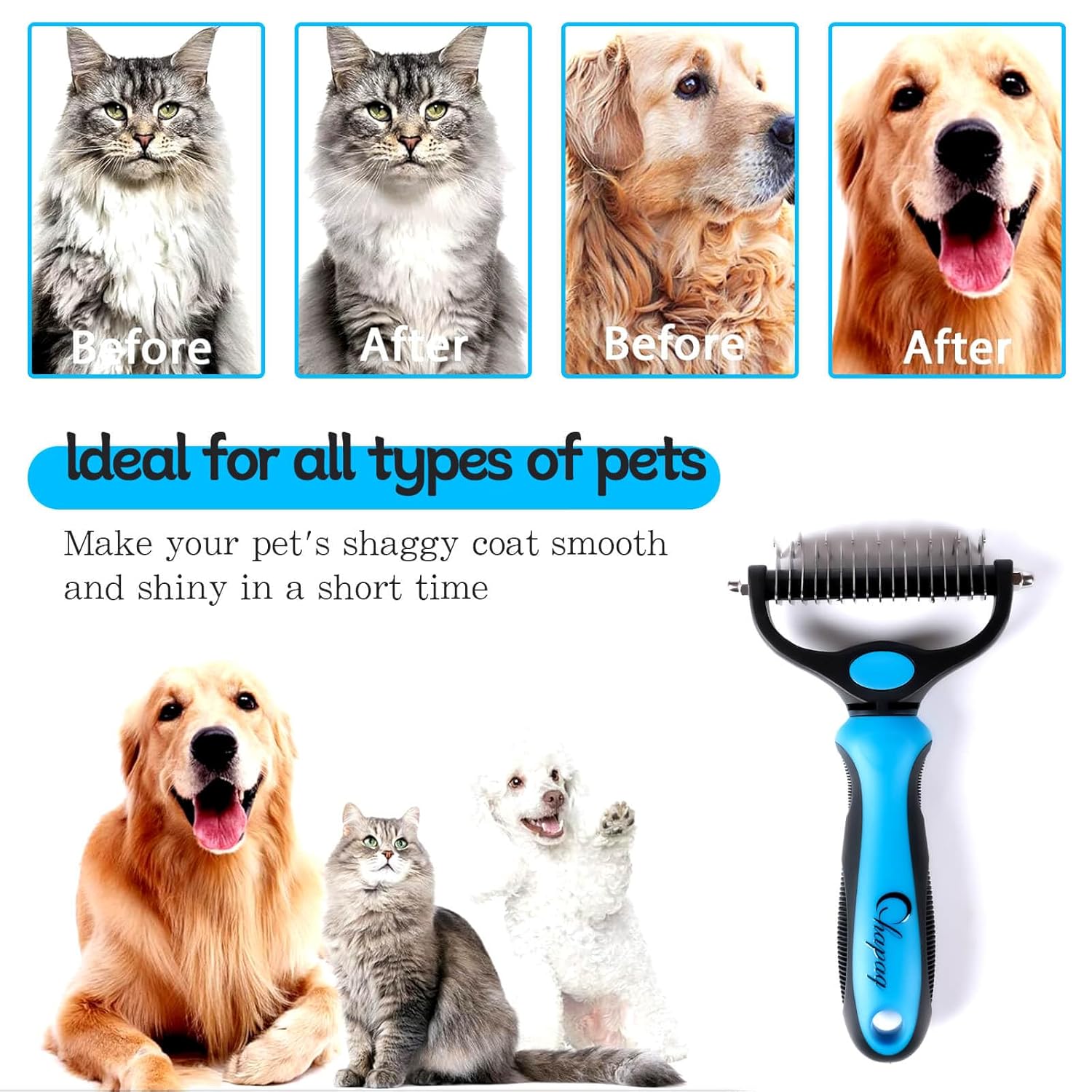 Dog de-shedding tool. DESIGN】: High quality stainless steel metal teeth and compact design make our product sturdy and durable. High quality and lightweight TPR handles provide a comfortable non-slip grip and let you enjoy grooming your cat’s comb. Double coated high quality dog under rake, cat grooming supplies, cat detangling comb, dog detangling comb.