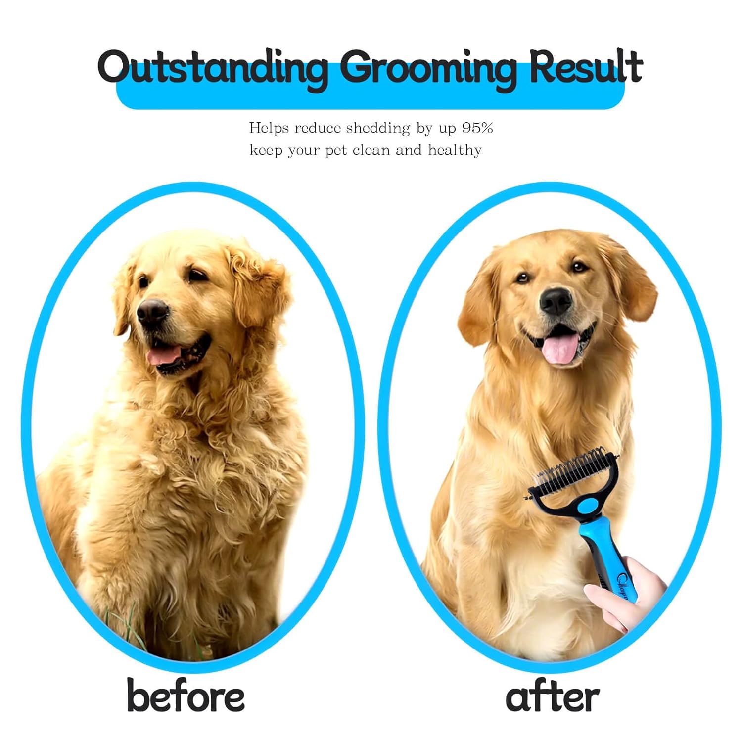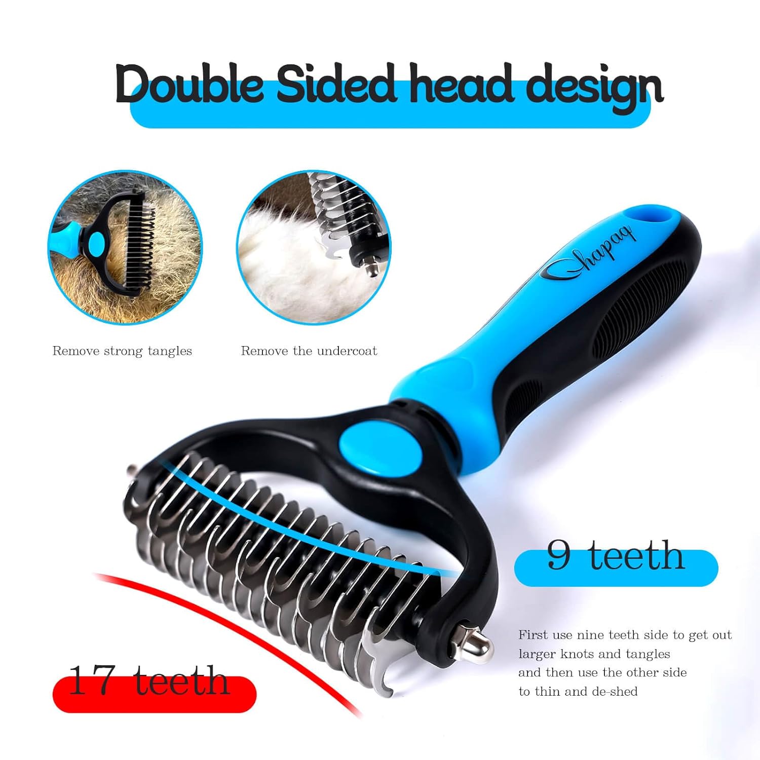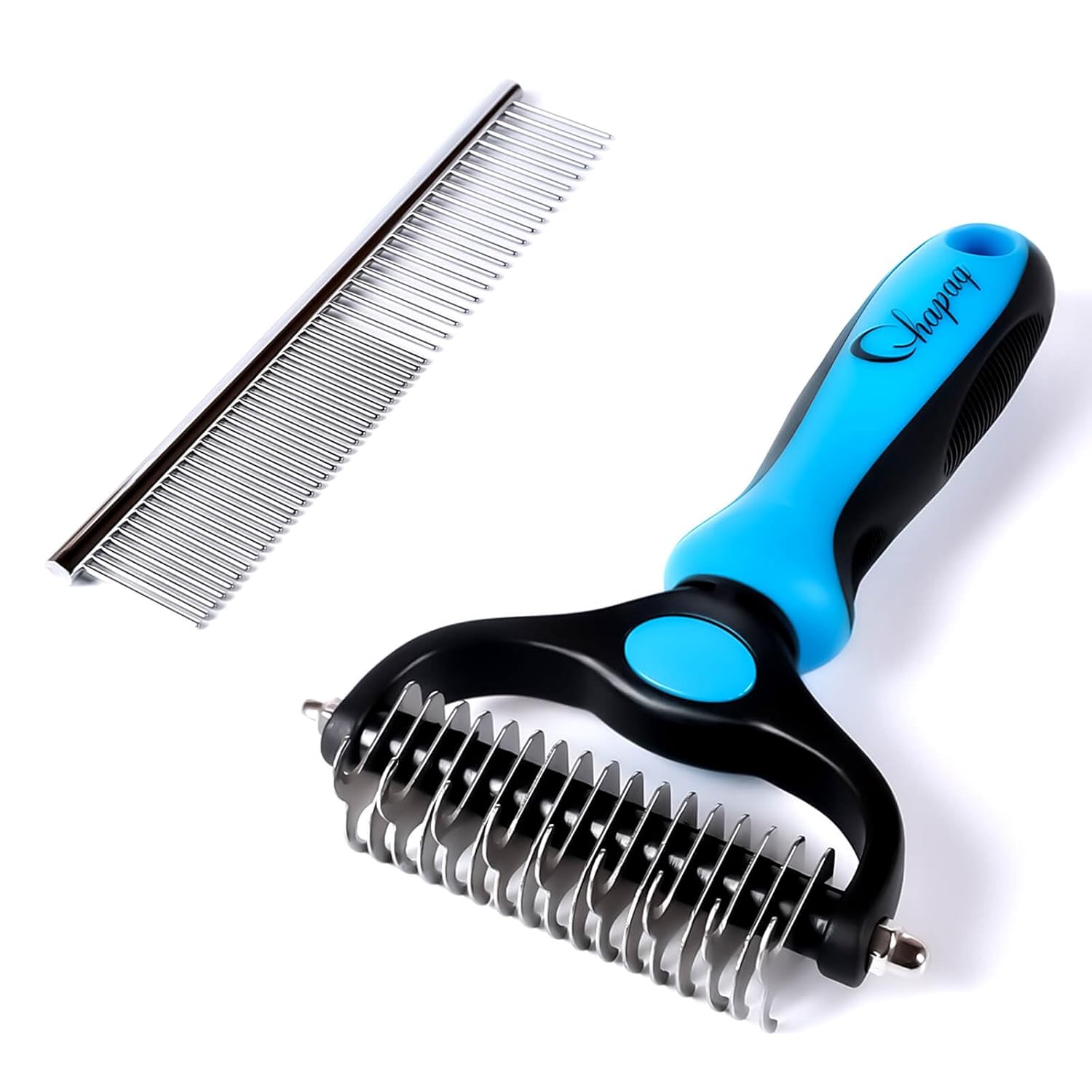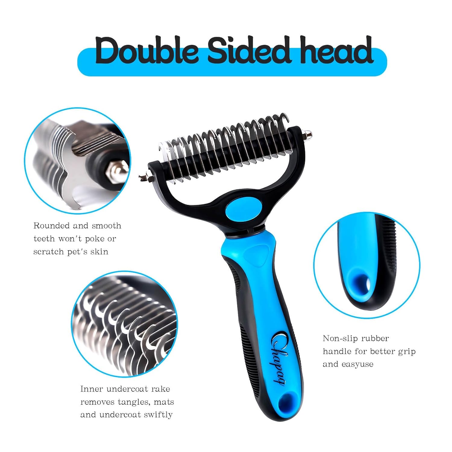 Dog de-shedding tool. DESIGN】: High quality stainless steel metal teeth and compact design make our product sturdy and durable. High quality and lightweight TPR handles provide a comfortable non-slip grip and let you enjoy grooming your cat’s comb. Double coated high quality dog under rake, cat grooming supplies, cat detangling comb, dog detangling comb.
