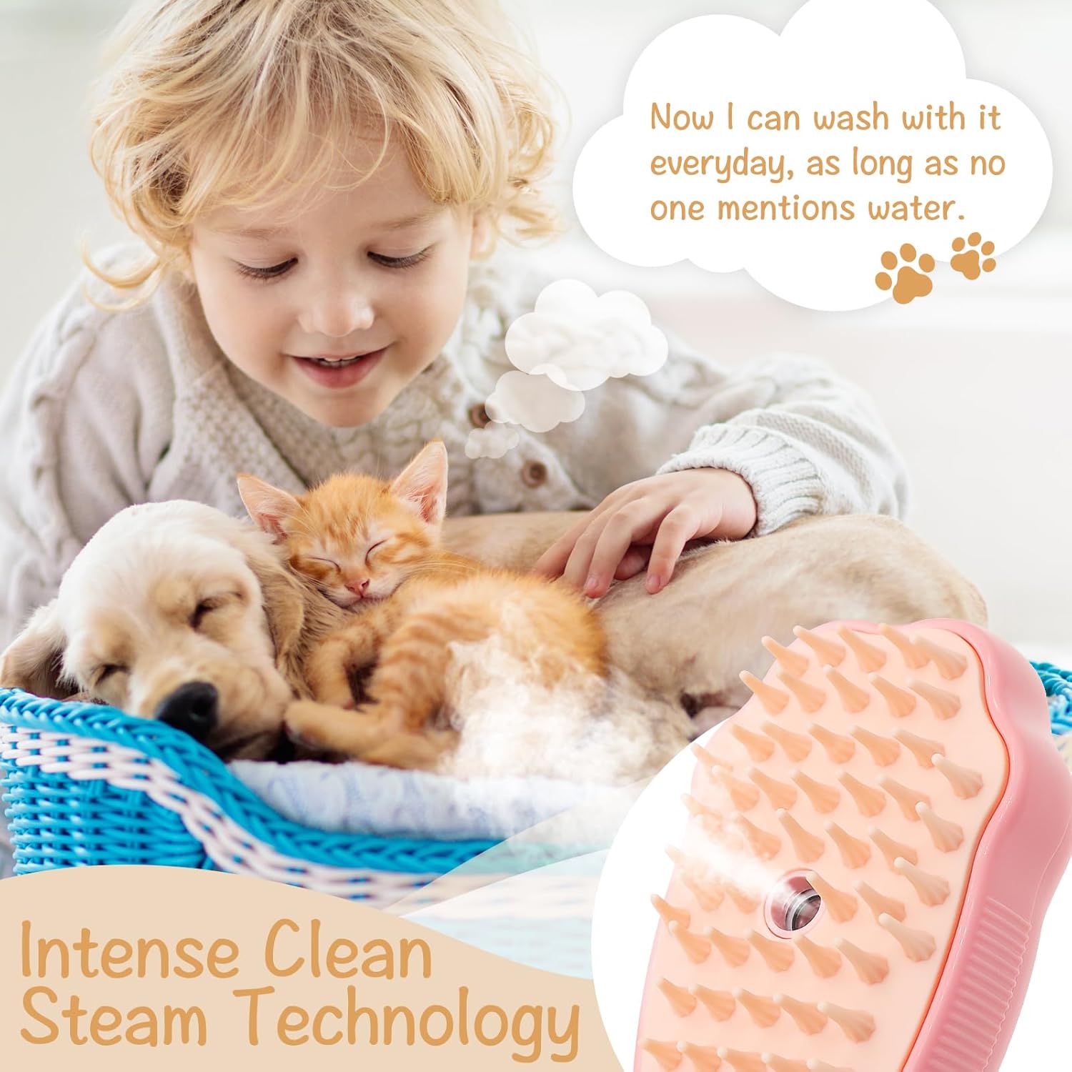 😻【Pet Favorite】Are you still worried that your precious pet is afraid of water and won’t take a bath? This 3 in 1 pet steam brush can bathe, massage, and remove hair, effectively solving the problem of dirty pets.