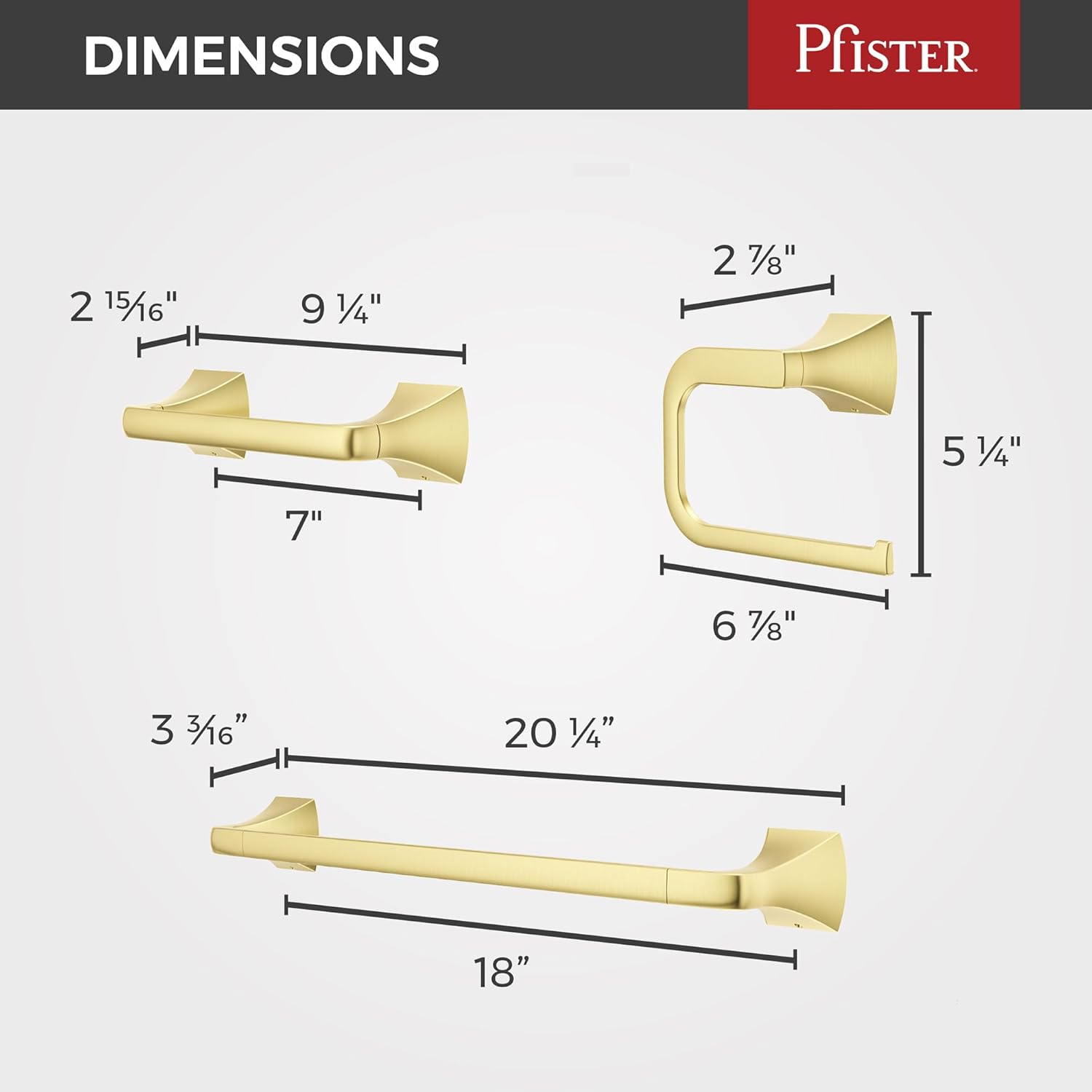 Pfister Bruxie 3-Piece Bathroom Hardware Set with Towel Bar, Towel Ring, and Toilet Paper Holder, Wall-Mounted, Brushed Gold Finish, BTBBIE3BG