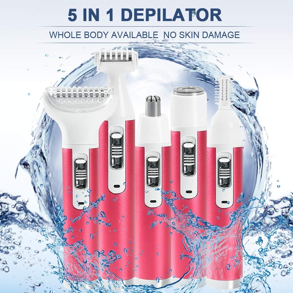 Phoking Trimmers for Women 5 in 1 USB Rechargeable Cordless Shaver Set Facial Hair Removal Painless Body Hair Nose Hair Eyebrow Arm Leg Bikini Trimmer for Women