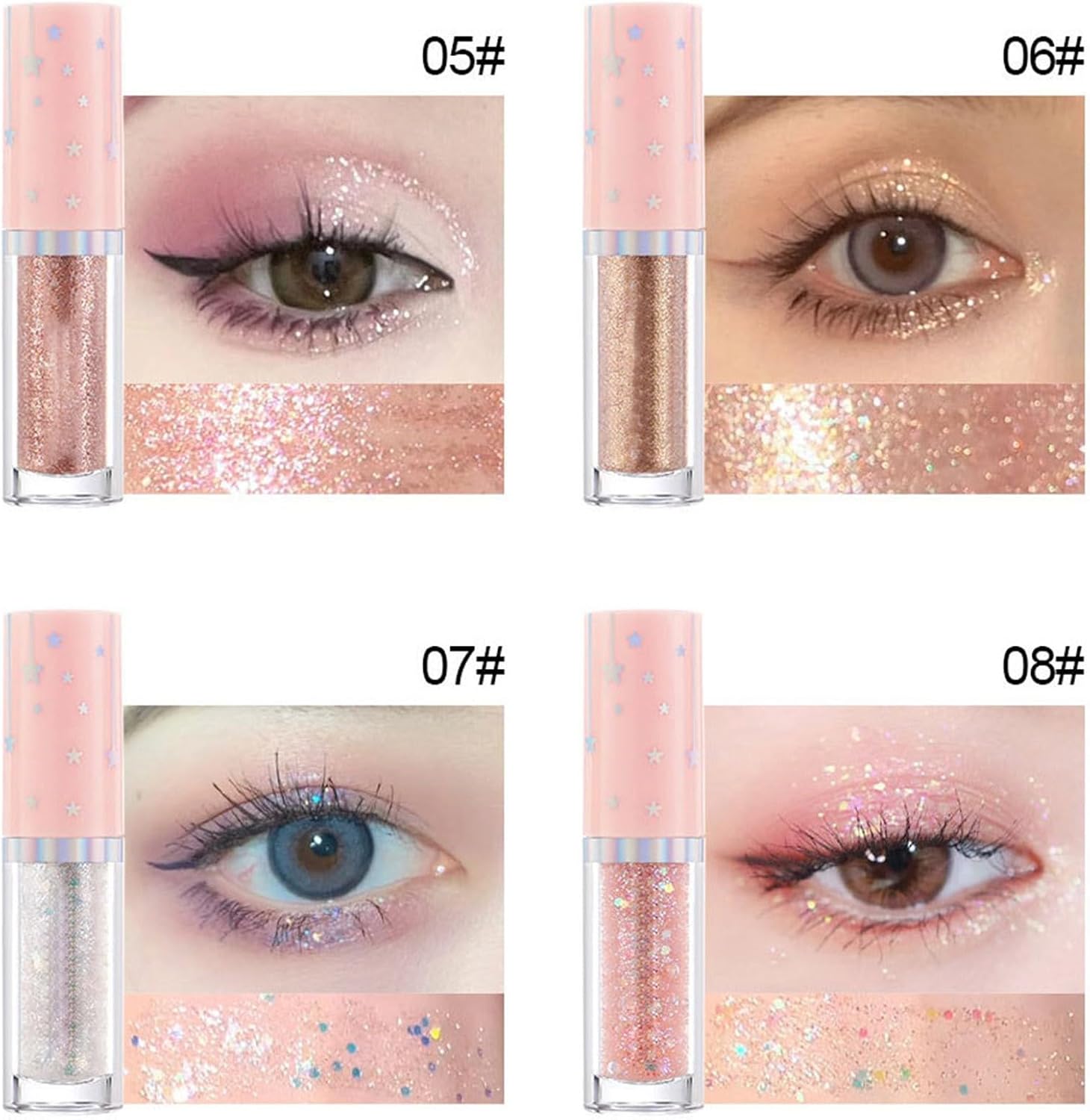 ❥【Liquid Eye Glitter】- It will last up to 12 hours for its highly pigmented formula. It goes on smoothly, and has a shimmer glitter highlighter effect.It works great when you go working/shopping/partying/even swimming throughout the day.