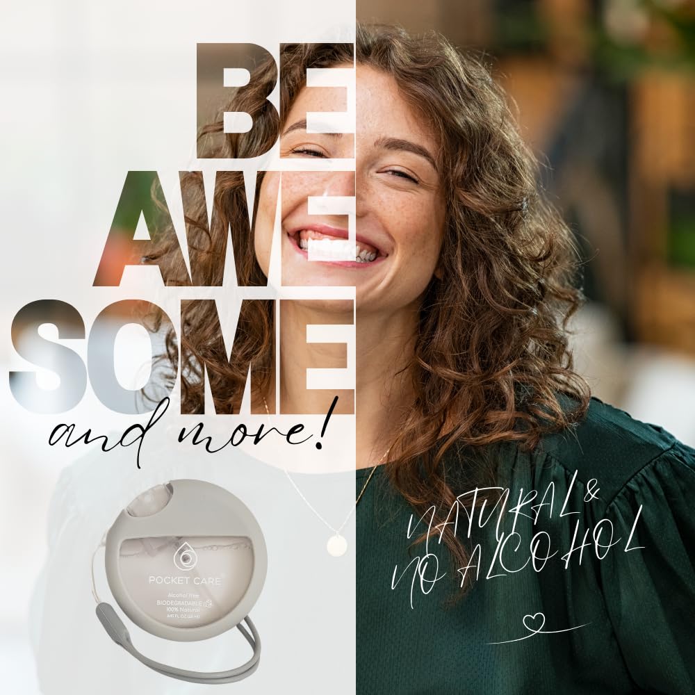 NEW DESIGN | Hand cleaning is easy with Pocket Care. Our flat and compact spray bottle is lightweight. Travel-size hand cleaner is ideal to take anywhere!