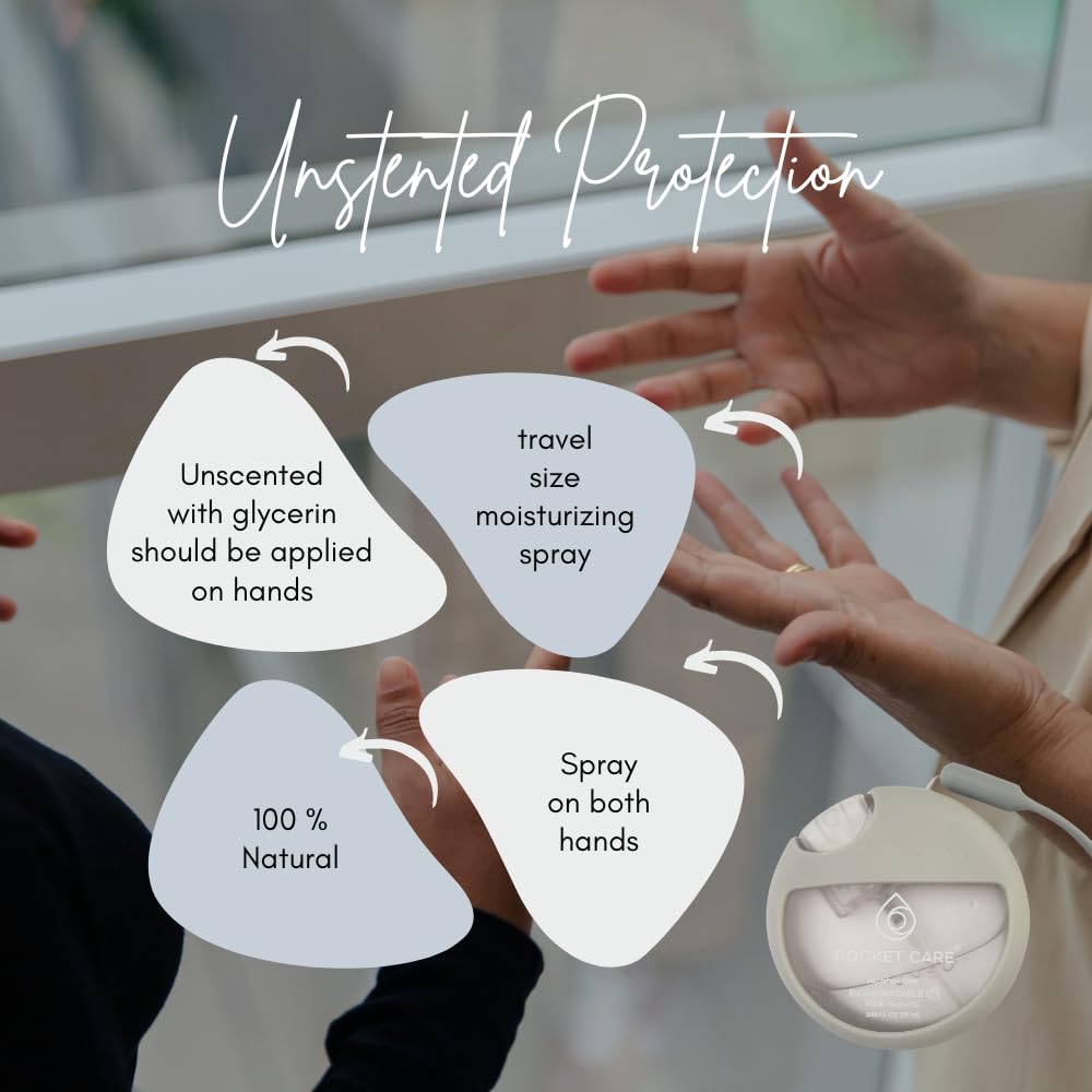 POCKET CARE |Unscented Sanitizer Spray with strap 25 ml / 8.45 FL OZ- Spray for Hands | Organic Moisturizing Spray | Travel Size – Travel Accessories | 100% natural (Unscented)