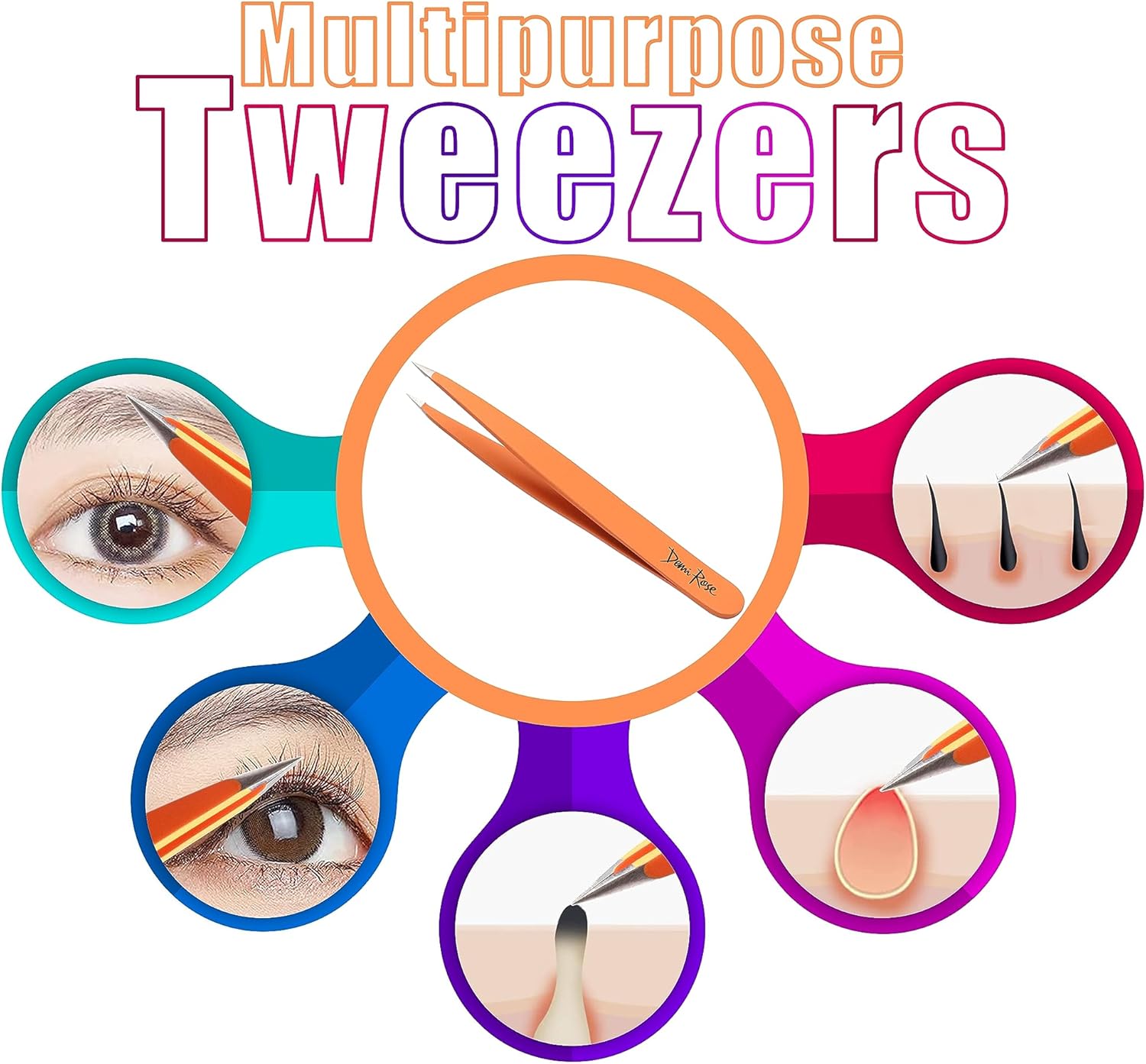 Pointed Tweezers Precision – Stainless Steel Needle Nose Tweezers for Women Facial Hair – Fine Point Tweezers for Splinter Removal – Sharp Tweezers (Pumpkin Orange)