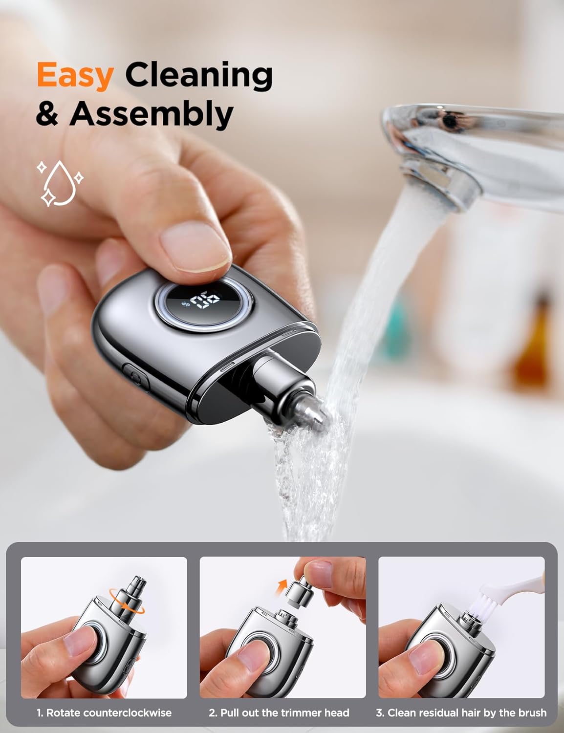 【Digital Display & USB-C Rechargeable】: The portable nose hair trimmer features a convenient digital display that shows the charging progress and monitors the remaining power level, eliminating any worries about unexpected power cuts. With its 400mAh rechargeable battery, you won’t need to replace batteries frequently. A single 1-hour charge provides up to 60 days of use, ensuring long-lasting performance.