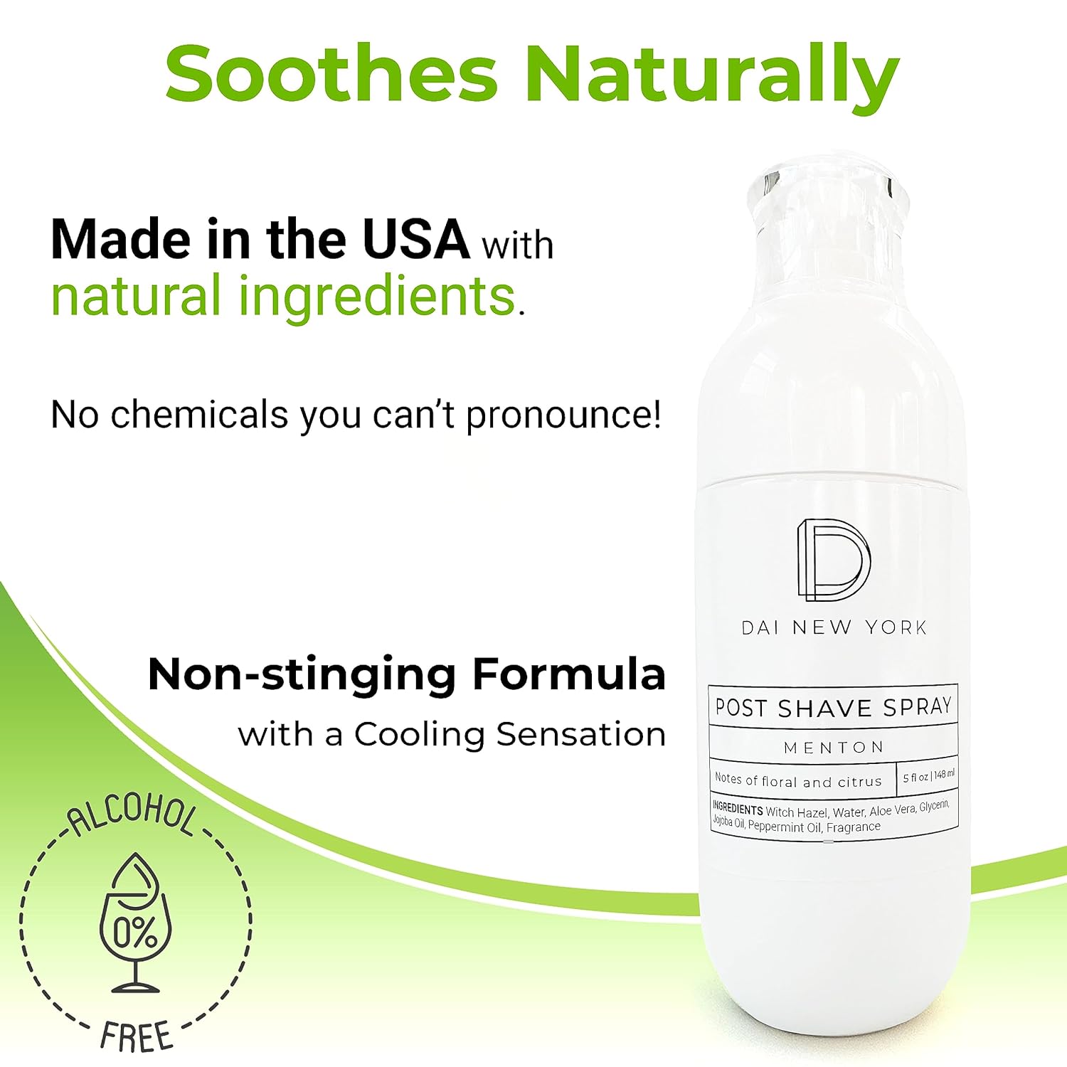 Dai New York has made it our mission to make you feel comfortable in your skin without using chemicals you can’t pronounce. That is why we hand-pick our ingredients for our gentle, yet powerful formula. Dai New York Post Shave Spray was created to moisturize, soothe, and refresh your skin.