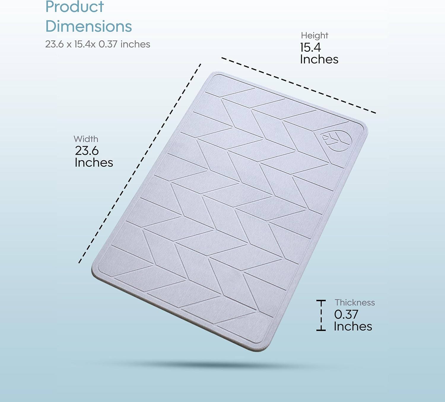VERSATILE AND SEAMLESS ELEGANCE: This 23.6 x 15.4 x 0.37 inches stone shower mat fits seamlessly into any bathroom, adding an elegant touch to the interior. You can also use it beneath dish racks or pet bowls, as a kitchen mat, sink mat, front door mat, etc.