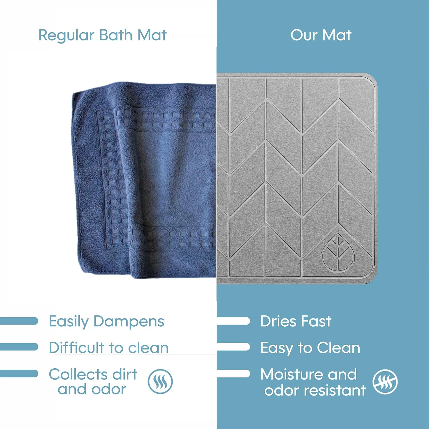 ELEVATE YOUR SPACE: Forget your old bath mat. Manufactured using 100% natural diatomaceous earth powder, our stone bath mat is a unique, contemporary alternative to ordinary bathroom rugs and provides a functional, quick-drying solution that will make your washroom look amazing.