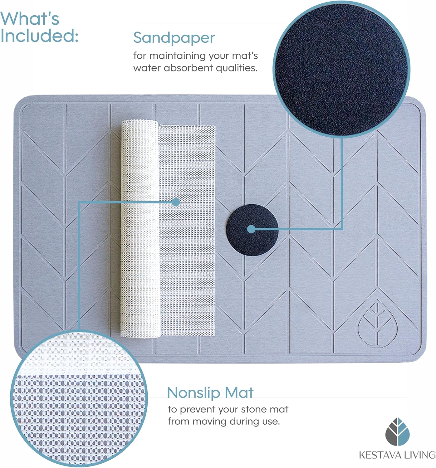 LUXURIOUS AND SAFE: Give your feet a spa-like luxurious comfort with the cool and comfortable texture that this diatomite stone bath mat provides. To add safety, our quick-drying stone mat is packaged with a separate accessory nonslip mat that prevents it from moving during use.