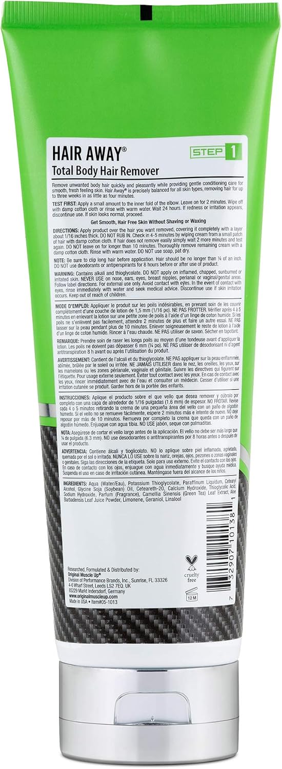 Works Quickly: Hair Away is precisely balanced for all skin types, removing hair for up to three weeks in as little as four minutes.