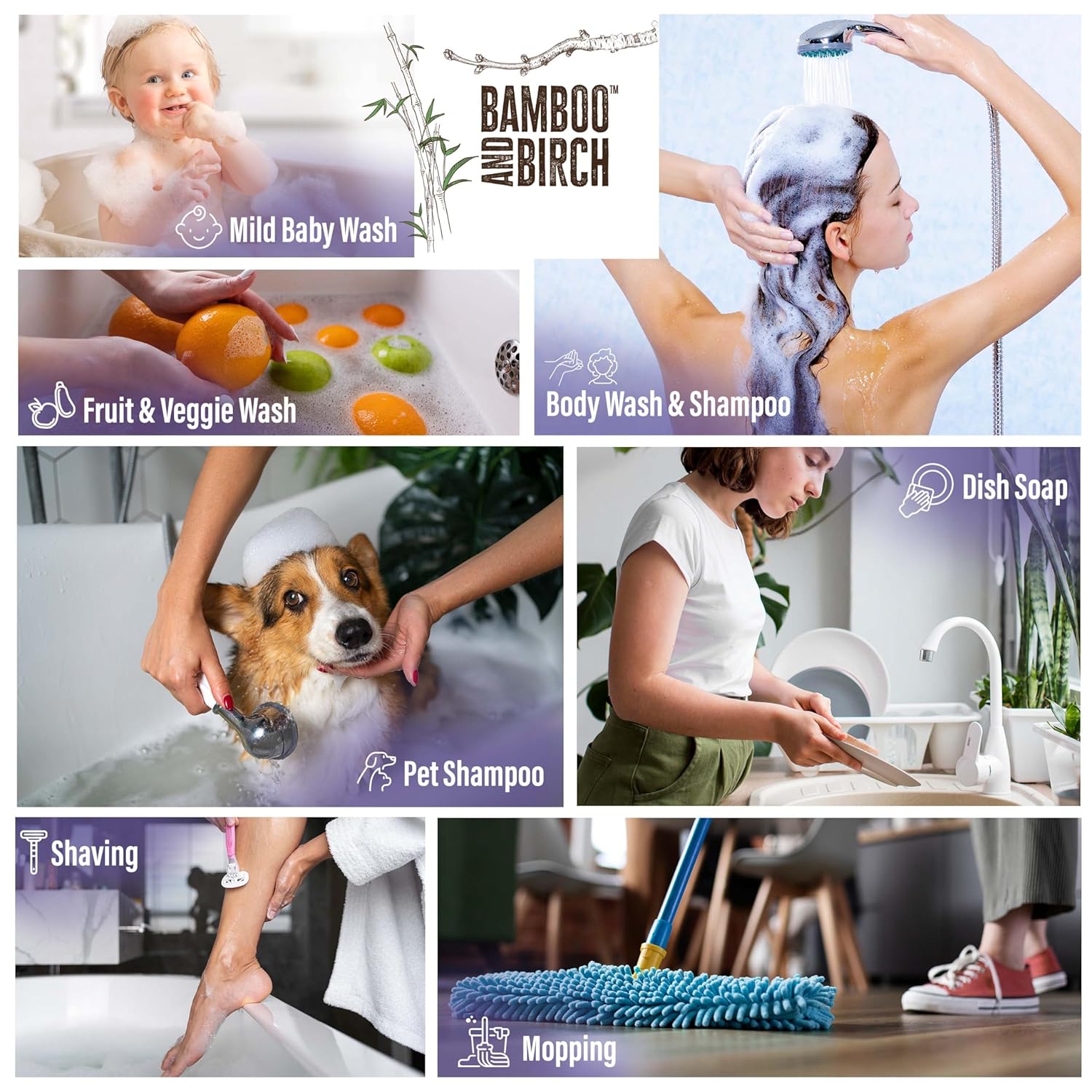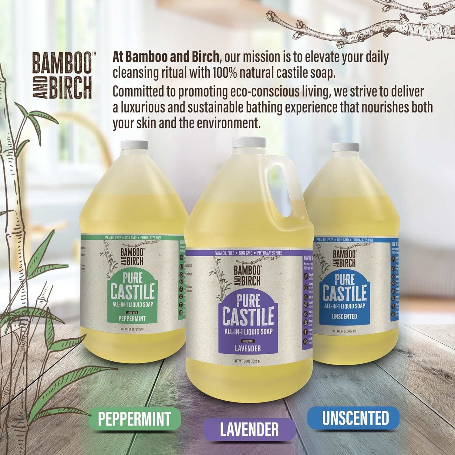 100% Natural Ingredients: Our liquid soap is made from the finest natural ingredients, sourced responsibly to ensure a gentle, yet effective, clean. Discover the secret to pure, natural, & luxurious cleansing with Bamboo & Birch castile soap liquid.