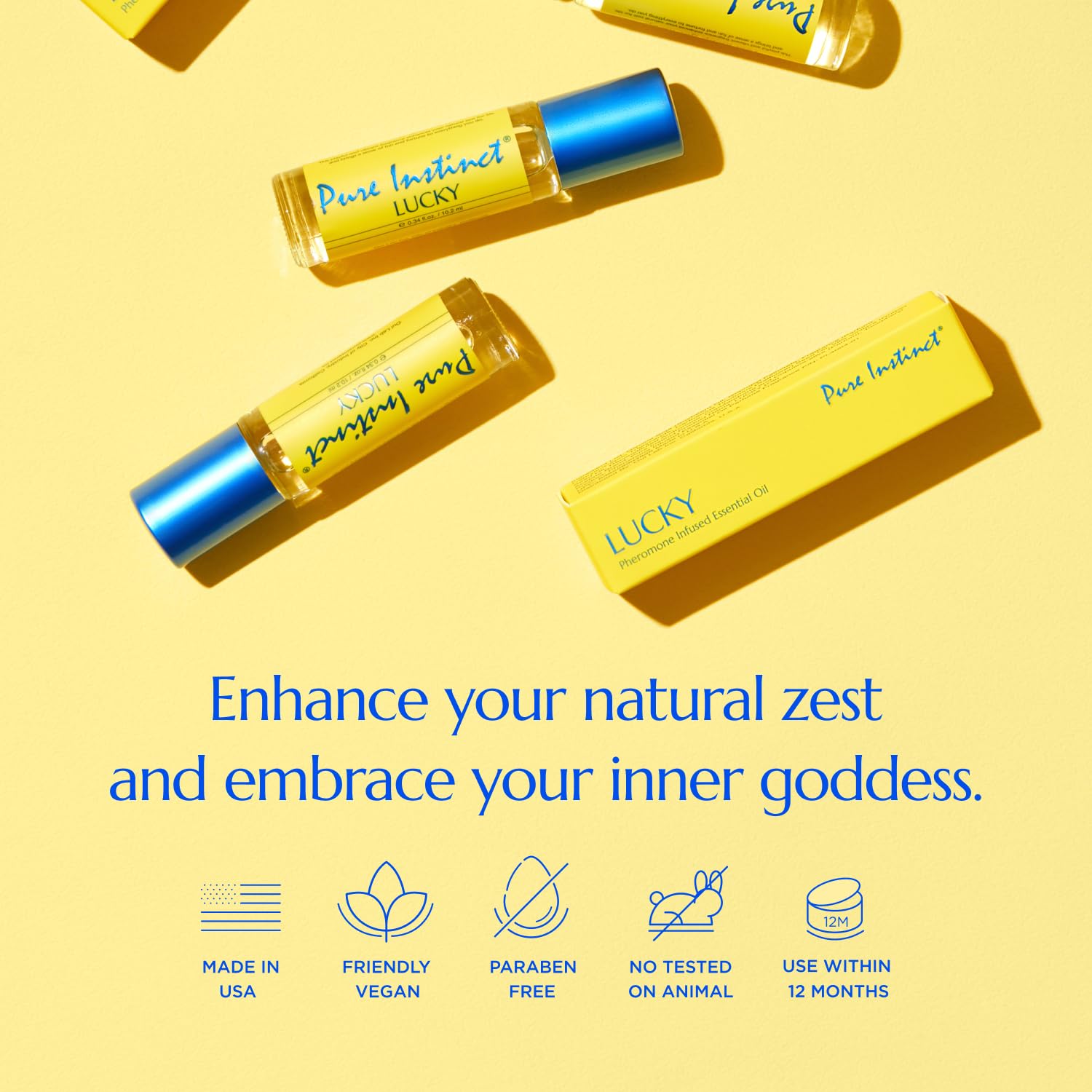 Pure Instinct LUCKY Roll-On The Original Pheromone Infused Body Oil Perfume Fragrance EdP Parfum – For Her Women – TSA Ready 0.34 fl oz