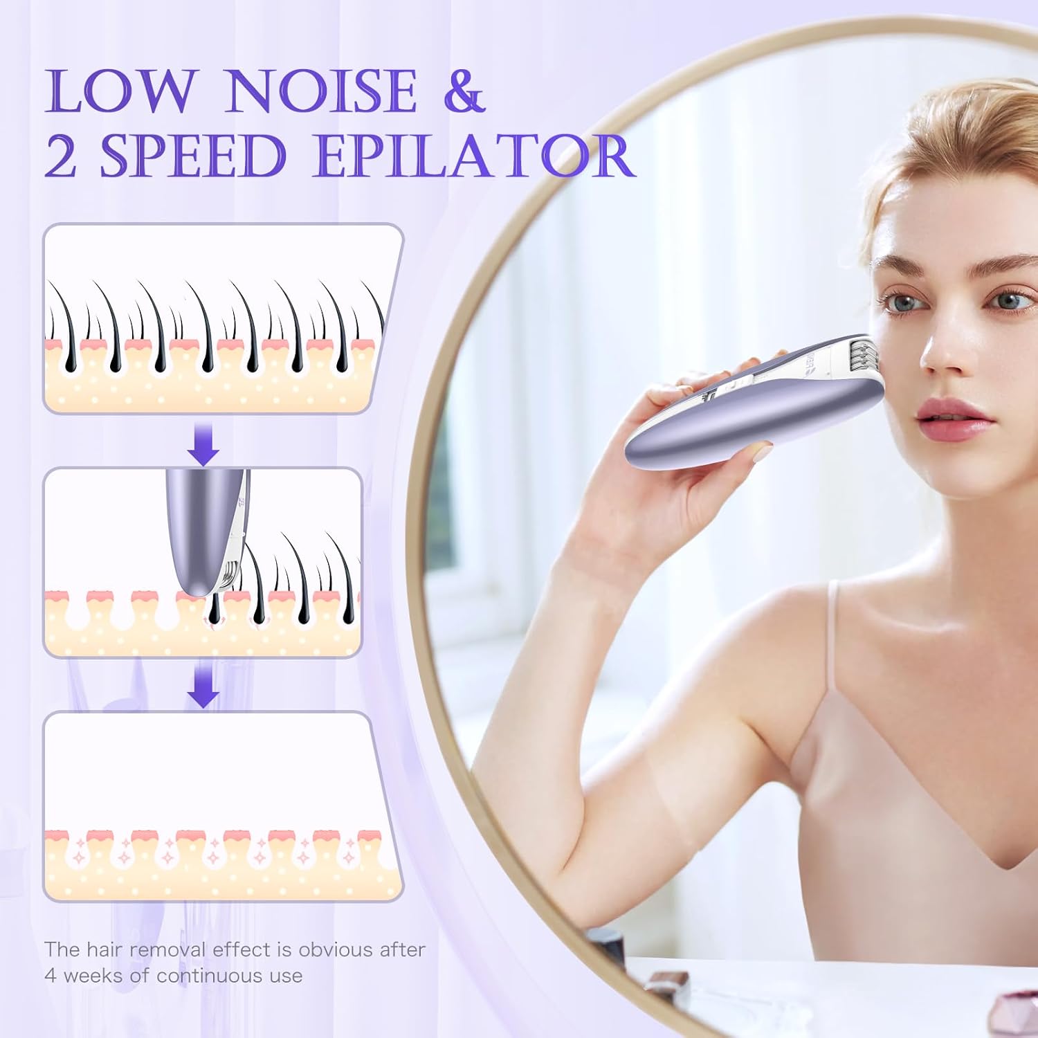 Purple Epilator,Epilators Hair Removal for Women,2 Speed Facial Hair Removal for Women,Epilator for Women Travel Essentials,Hair Removal,Shaver for Women Face Legs Bikini Rechargeable,Wet & Dry
