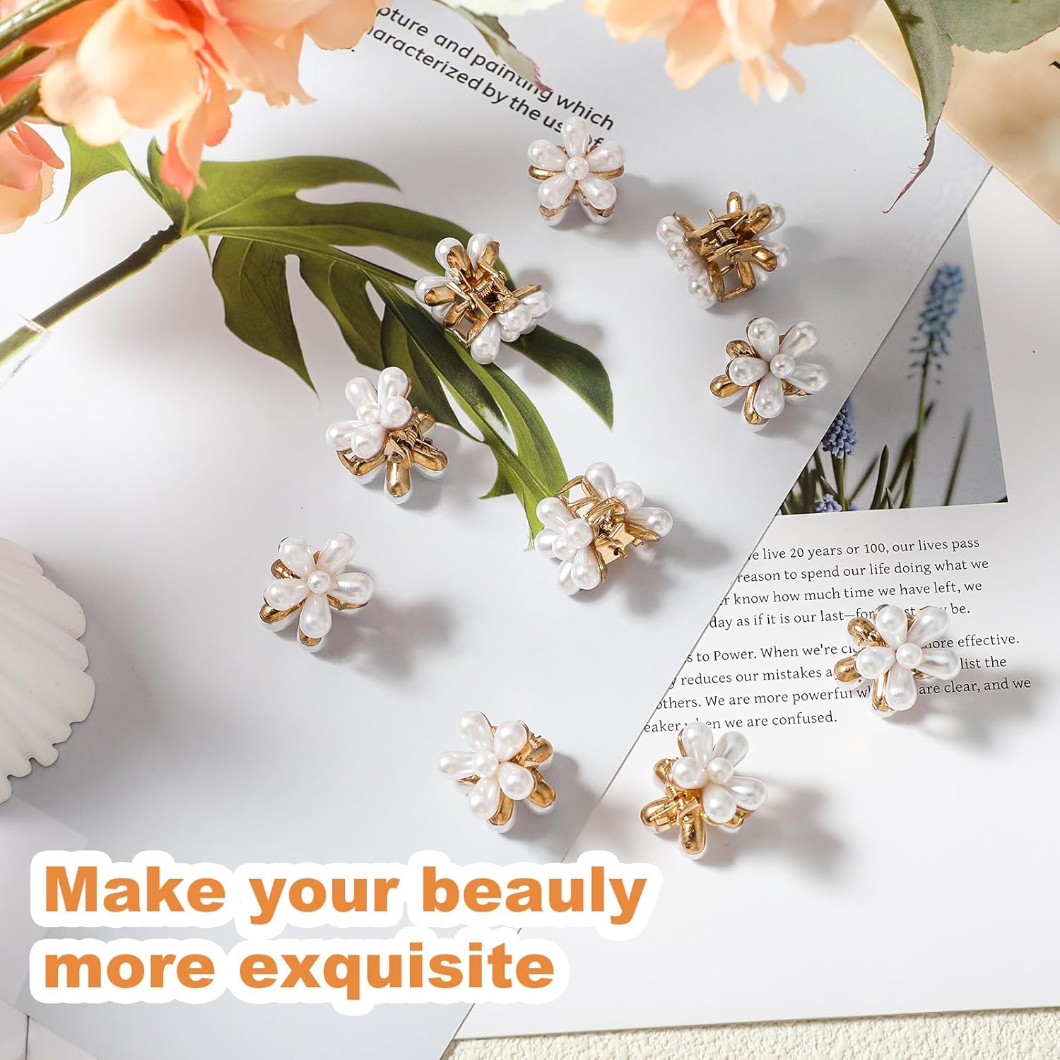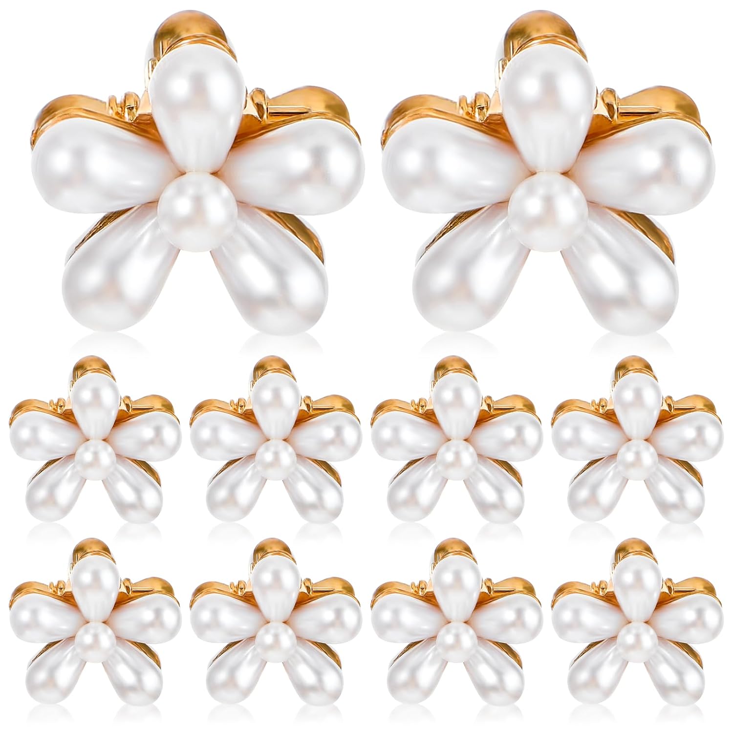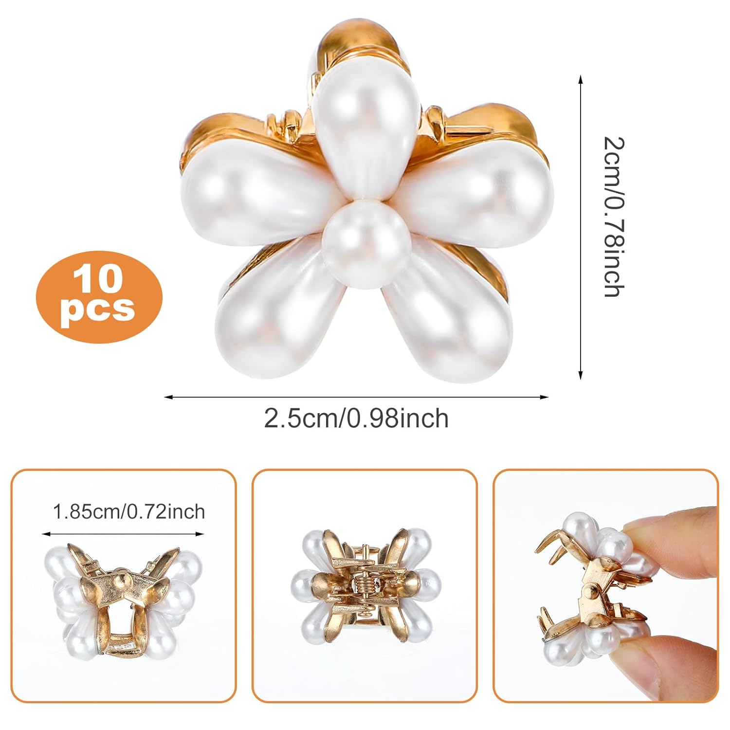 Qianyu 10 Pcs Small Mini Faux Pearl Hair Claw Clips with Daisy Flower Design Sweet Nonslip Artificial Cute Tiny Metal Bangs Clips Decorative Hair Accessories for Women and Girls Gift