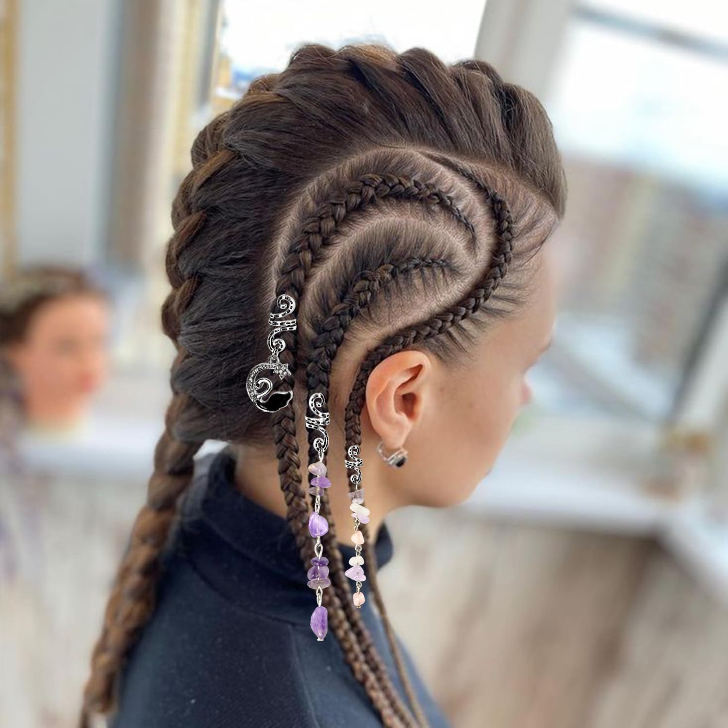 Qingchuang Hair Accessories for Dreadlocks, 44 Pcs Natural Crystal Stone Dreadlock Art Craft Kit for Braids Hairstyle Decoration, Light weight Hair Jewelry pendent for Girls Women