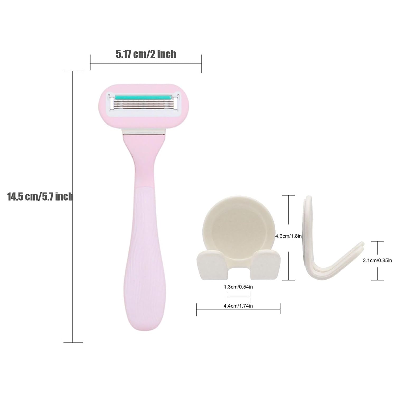 【High Quality】The women razors are made of stainless steel blade and Alloy, ABS, TPR handle and are durable. Our razors set includes 1x razor handle,2 x five blade cortridges,1 x non marking waterproof adhesive razor holder.