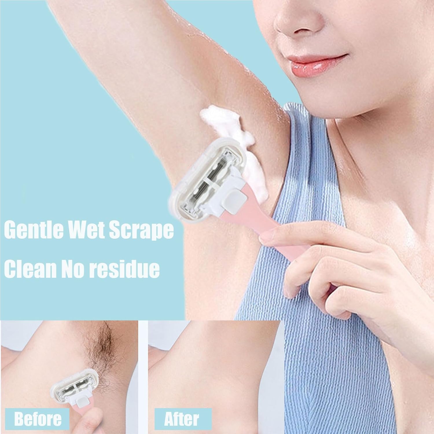 【Flexible Floating】90° adjustable blade head, flexible control, adapts to skin curves and changes angle, shaving more cleanly, including shave the underarms, arms, legs, bikini area, etc.. No awkwardly angling your razor. Can apply some cream before shaving with these face shavers for a smooth and more comfortable experience.