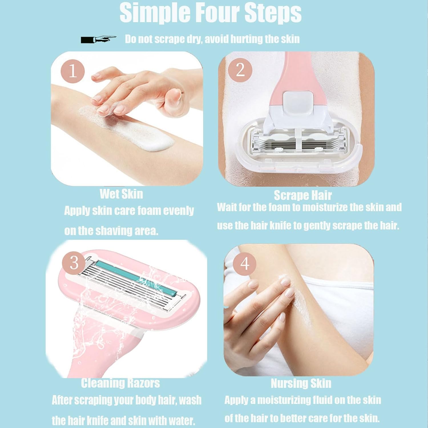 【Five Layer Progressive Blade】The women razor have 5 blades to deliver an extra smooth shave that lasts. Precision blade, progressive layer by layer shaves without residue and reduces black spots. Shave cleanly in one go for more efficient hair removal.